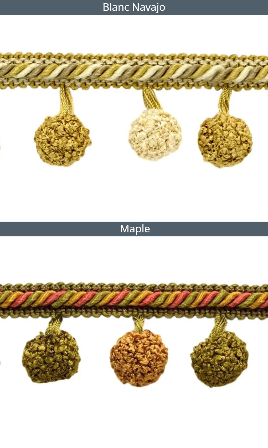 Handwoven in Turkey, each individual tassel in this trim is handtied by expert artisans, making each bobble unique. We therefore expect very minor variance between trims and tassels.