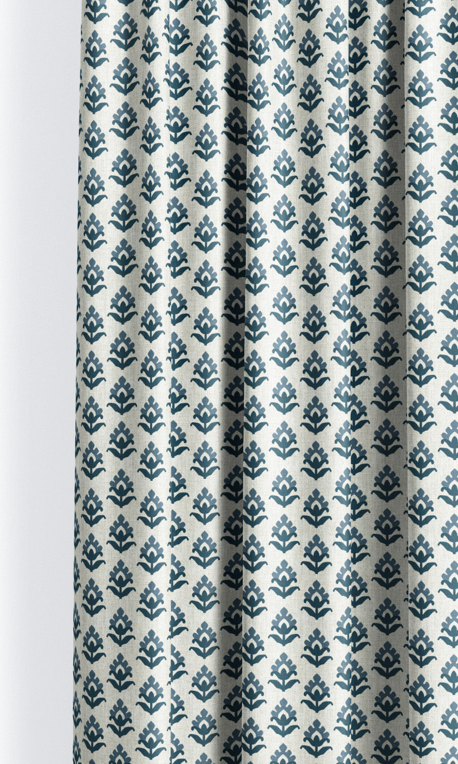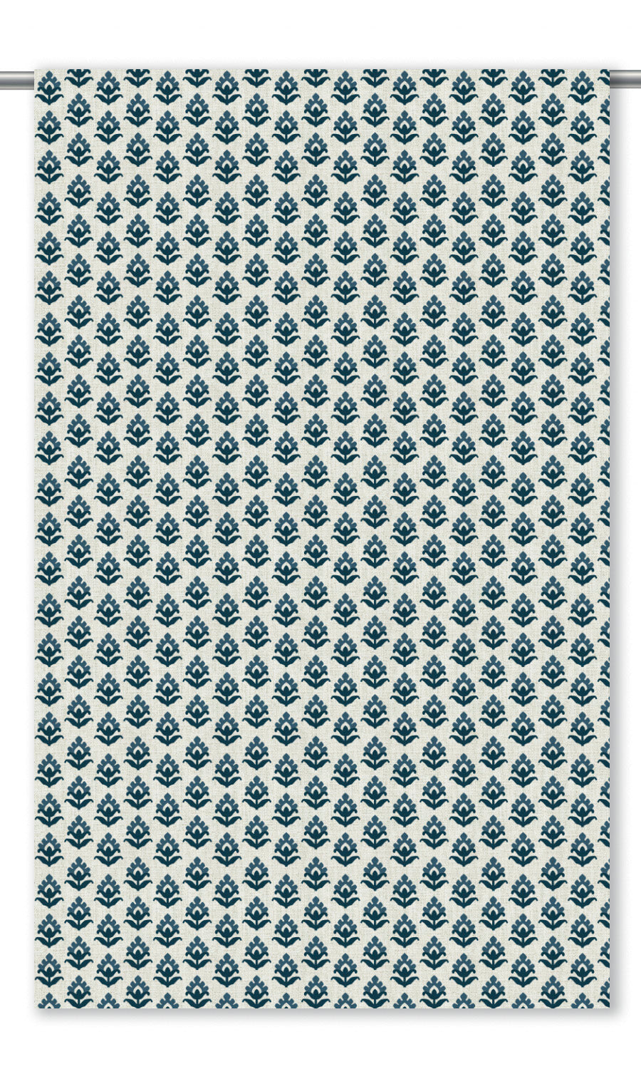 - Its calm cream canvas upon which serene deep blues bring a garden to life