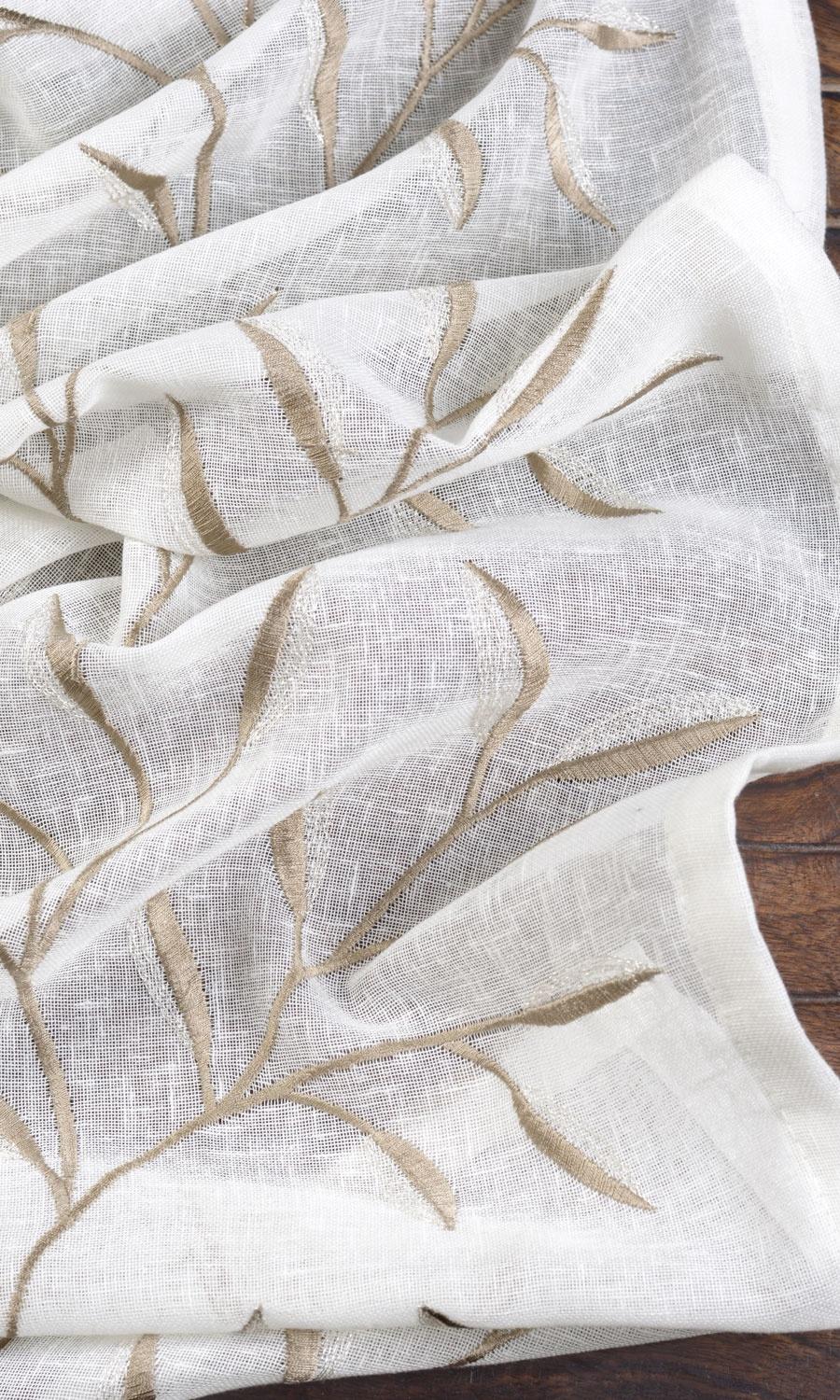 An irresistible white sheer with nimble needlework of slender botanical motifs. If you are a fan of white sheers but keen on something a bit different, Primrose Sun will be a tempting alternative. Its brown vine motifs add unique character to the space without compromising white's serenity - quietness of modern decor and simplicity of rustic spaces nailed in a single shot. The gauziness welcomes light, the neutral colors spread calm, and the embroidered motifs give a nod to nature's serene elegance - can't get better!