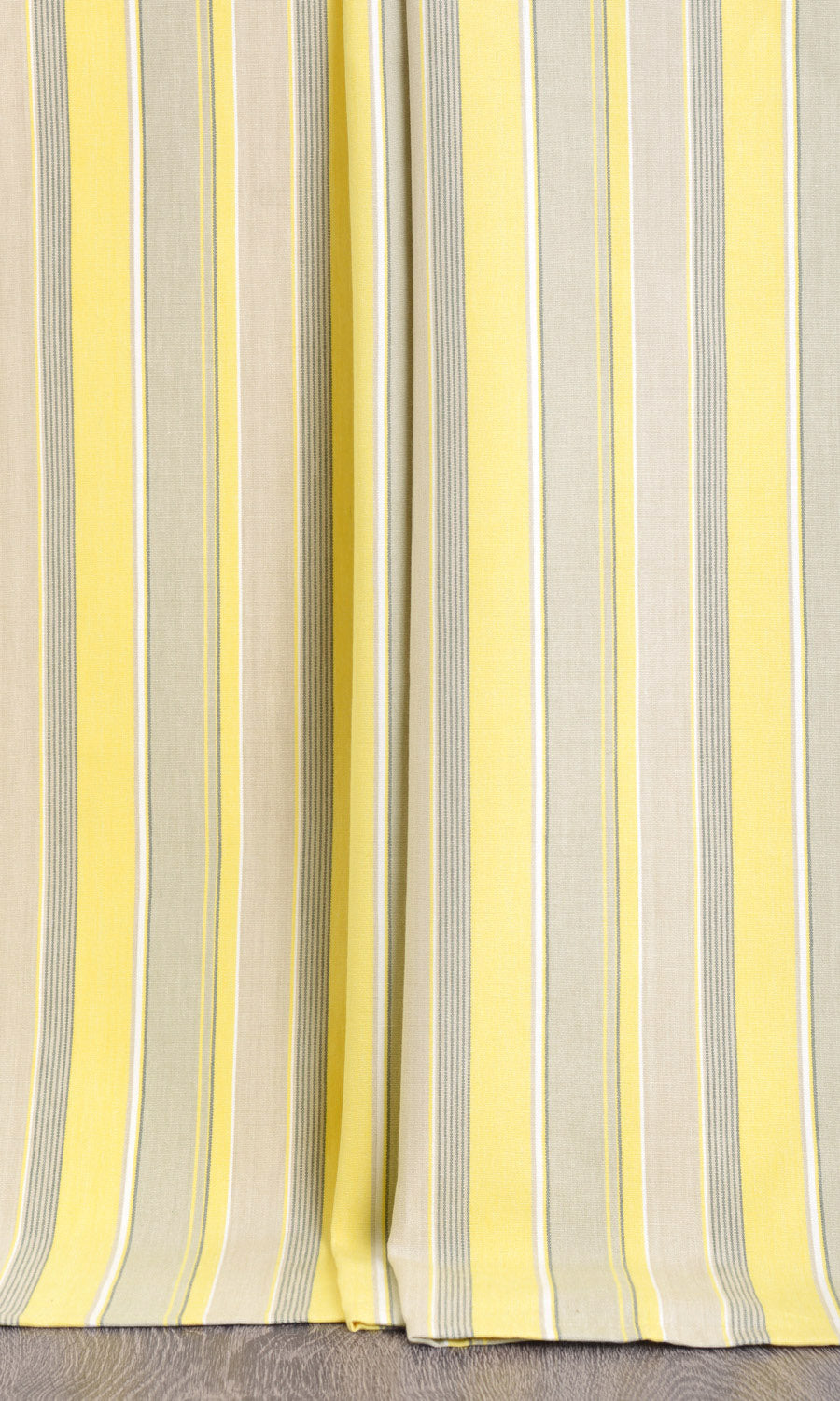 When life gives you lemons, add some grays and get Pumpkin Harvest. This lovely fabric has longitudinal stripes in lemon yellow, pale gray and ash gray. Variations in widths of stripes are further highlighted with thin white stripes. Soft and gentle, sophisticated and sober, this is the fabric for a peaceful interior.
