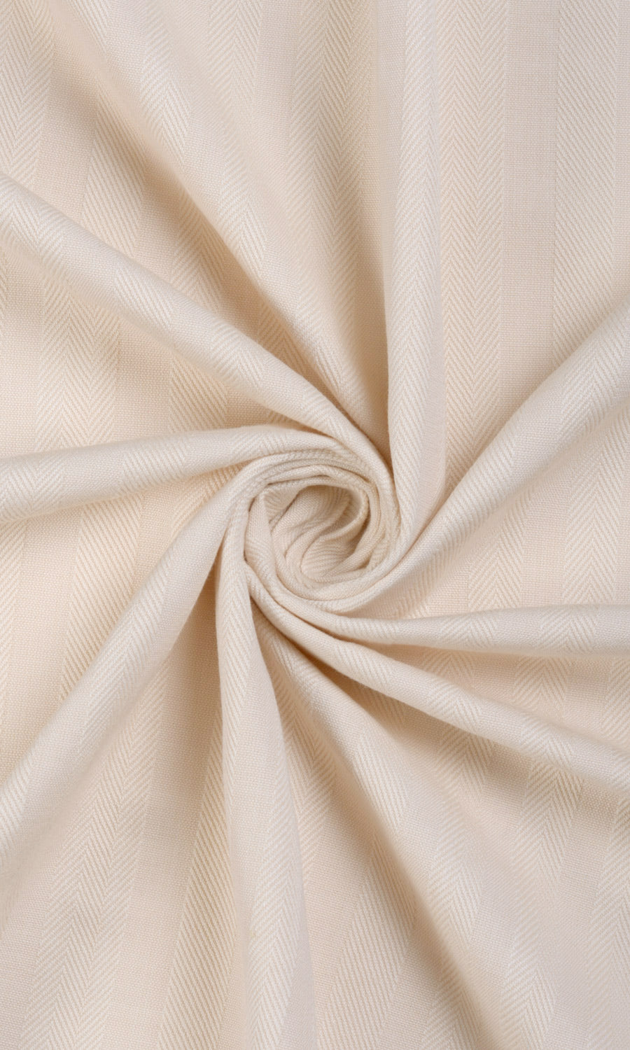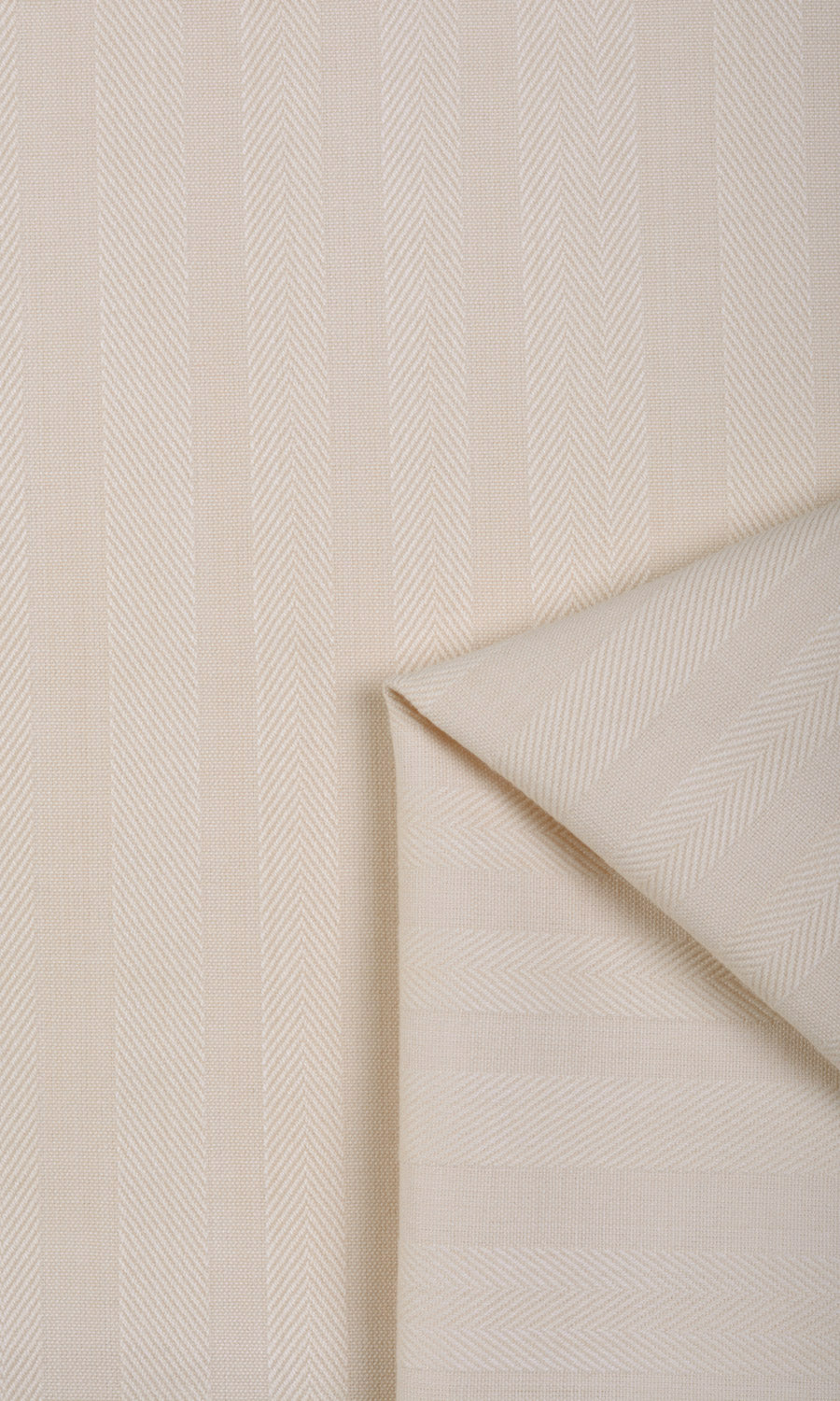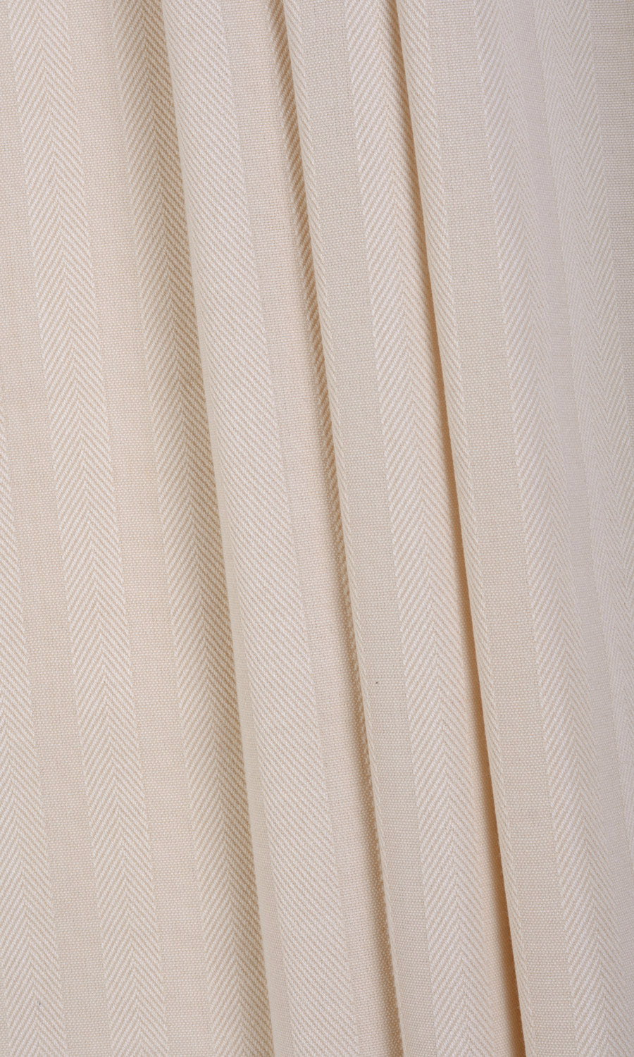 An elegant neutral fabric with a herringbone woven stripe. The versatility of this easy cotton makes it an excellent complement to any color palette and decor style. Its pure cotton composition makes it a great suitor for nurseries, kids' rooms and chemical-sensitive homes.
