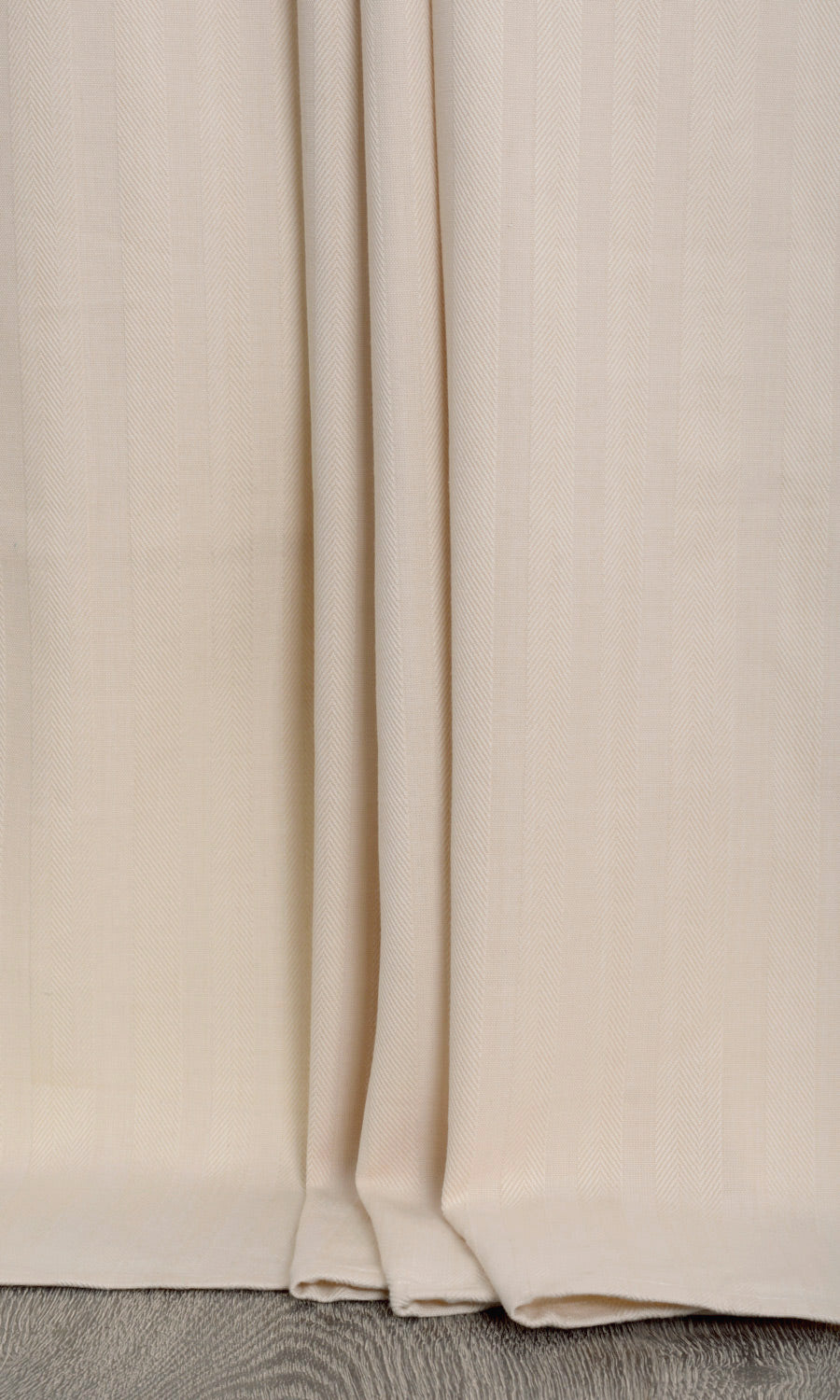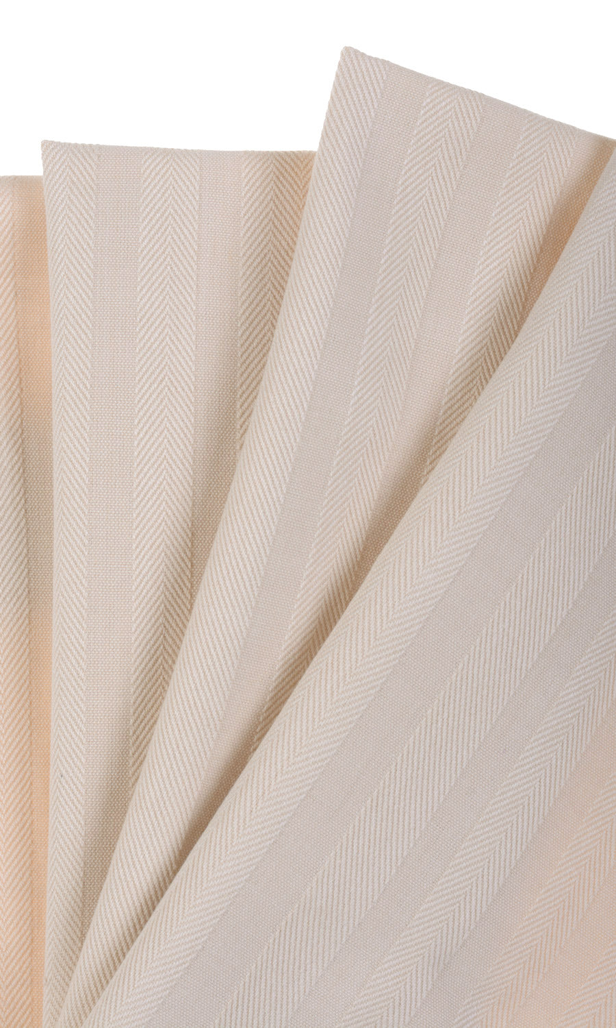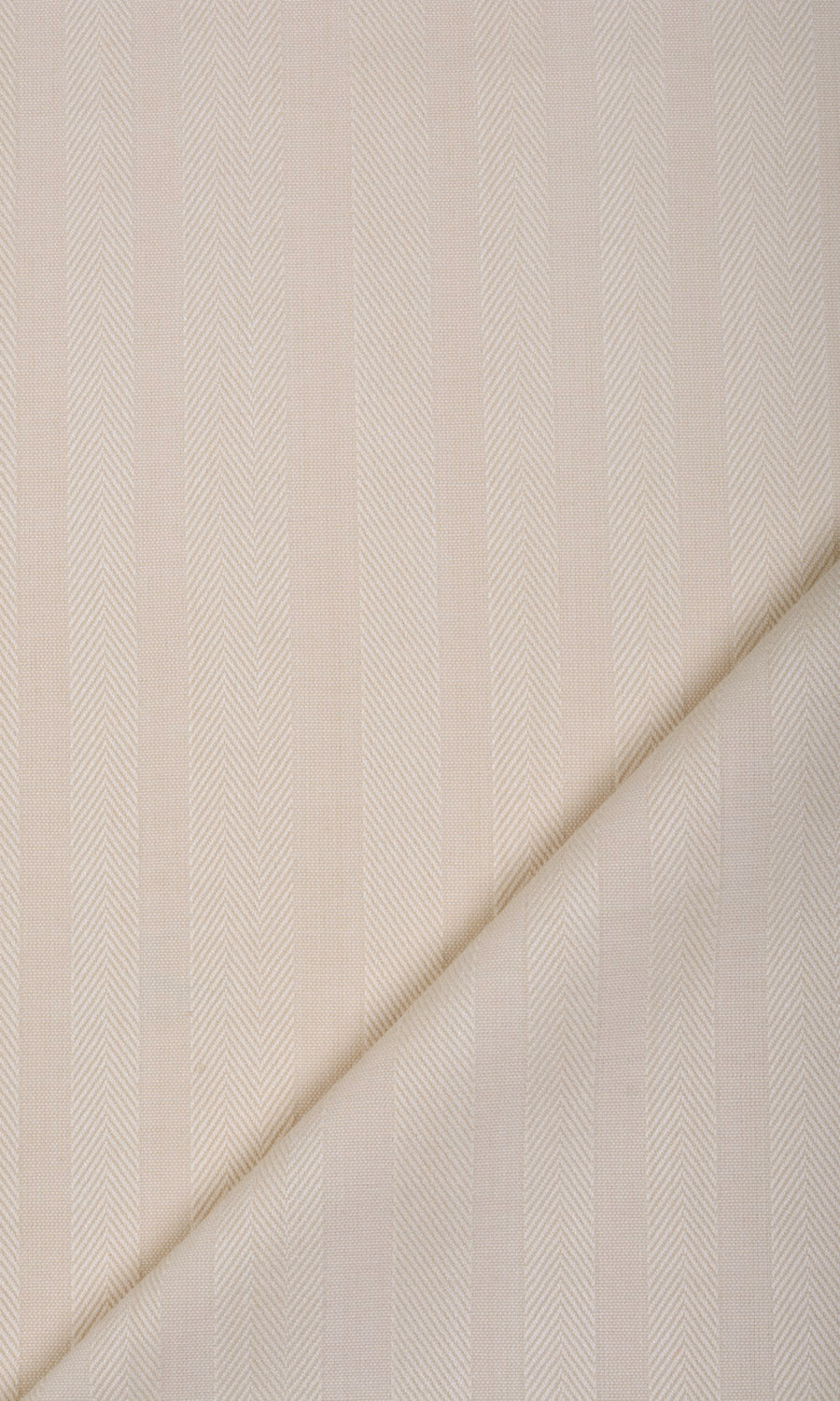 An elegant neutral fabric with a herringbone woven stripe. The versatility of this easy cotton makes it an excellent complement to any color palette and decor style. Its pure cotton composition makes it a great suitor for nurseries, kids' rooms and chemical-sensitive homes.