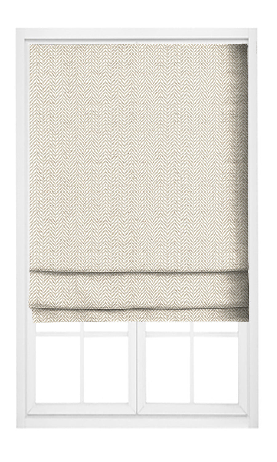 - Add to coastal interiors: Adorn coastal-style homes with Quincy Tan beige herringbone textured roman shades. They ring in visual warmth with their gentle, earthy tones, balancing the coolness of the blues and whites sprinkled generously all over the space.