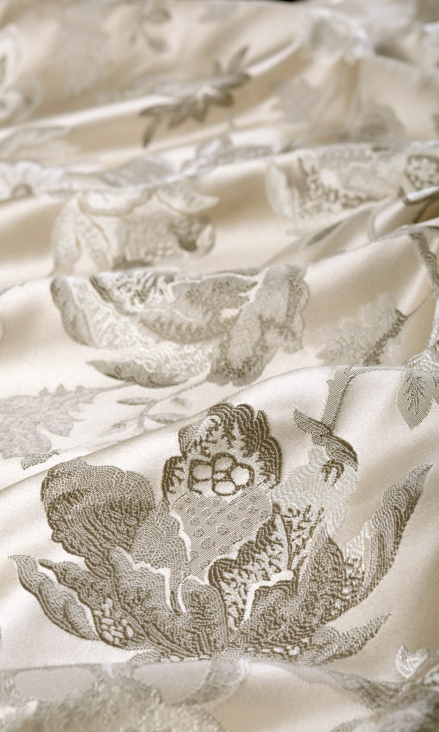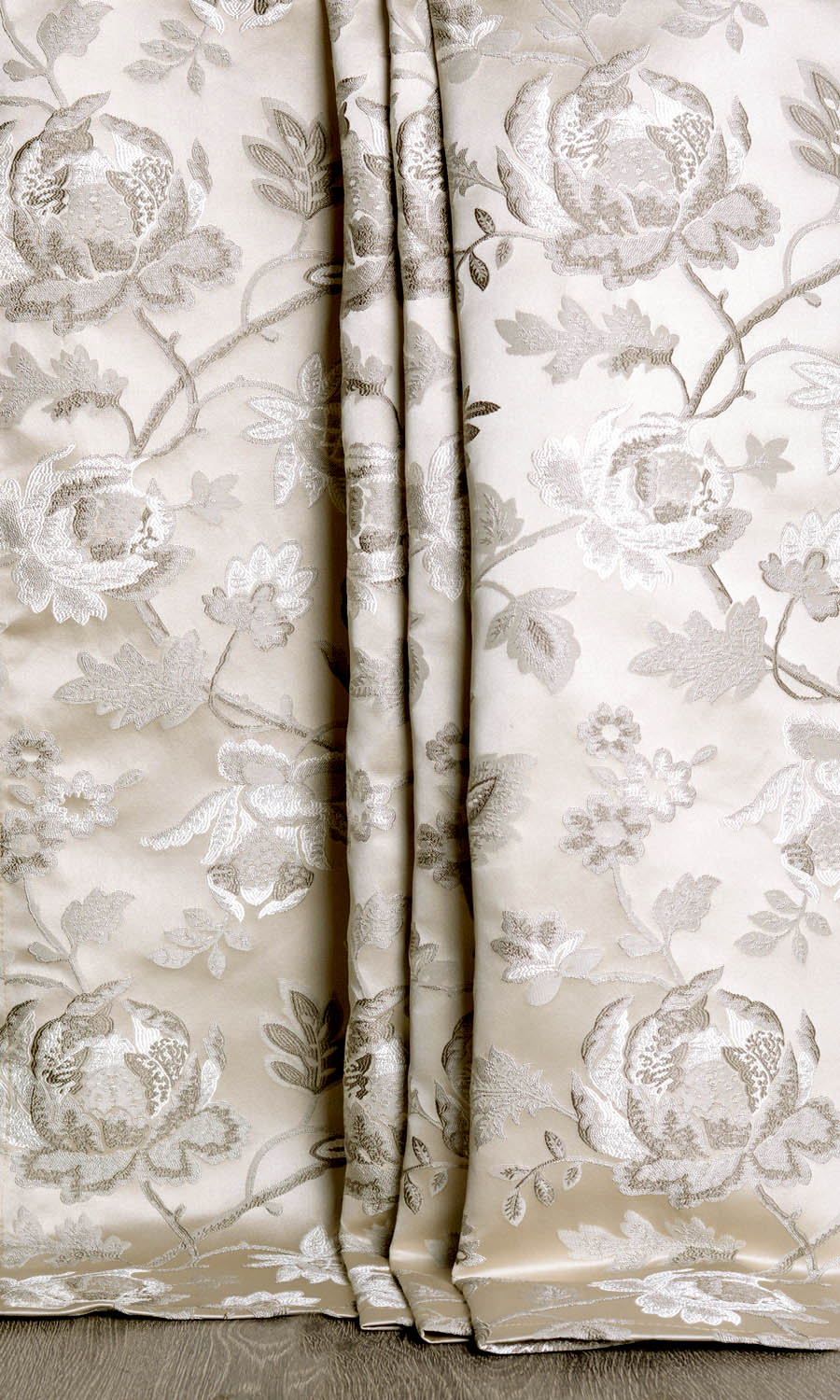 When your room needs to reflect refinement and good taste, opt for this beautiful self patterned damask fabric with a charming floral pattern. Its monochrome beige palette with brightening touches of cream captures imagination and works with most decor trends. We recommend pinched pleated curtain style to evoke full grace of this fabric.