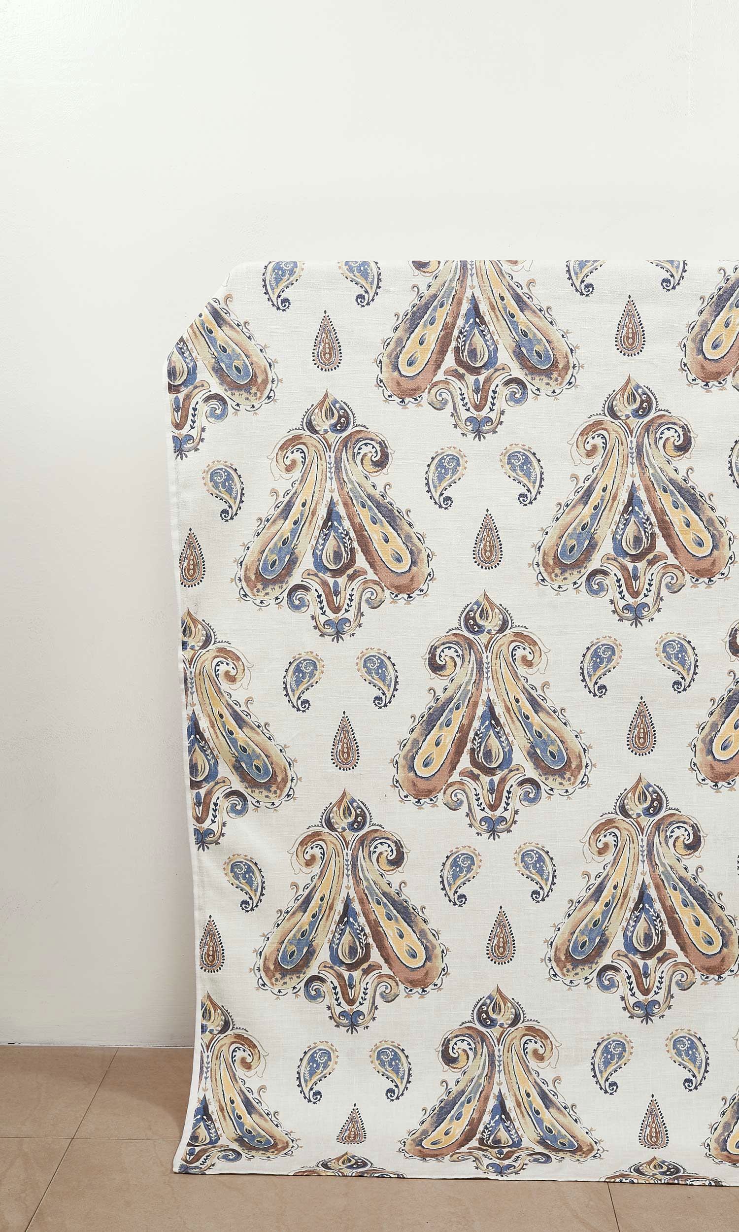 Serene and sublime with their graceful paisley print. Tasteful browns and sober blue tones on a subdued white background create a sophisticated effect that's perfect for traditional as well as contemporary interiors. A perfect foil for wooden floors and pale walls!