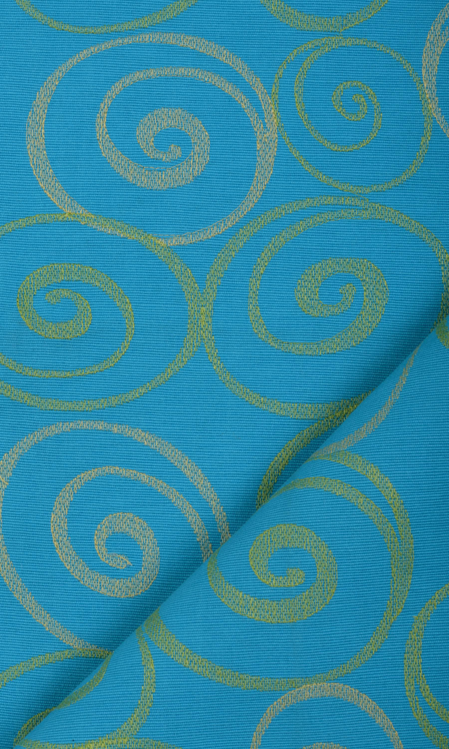 Featuring more than a hint of color and joy, this fabric brings cheer wherever it's hung. A gorgeous blue with yellow/green swirls, it serves as an excellent backdrop to any blue, yellow or green-led decor.
