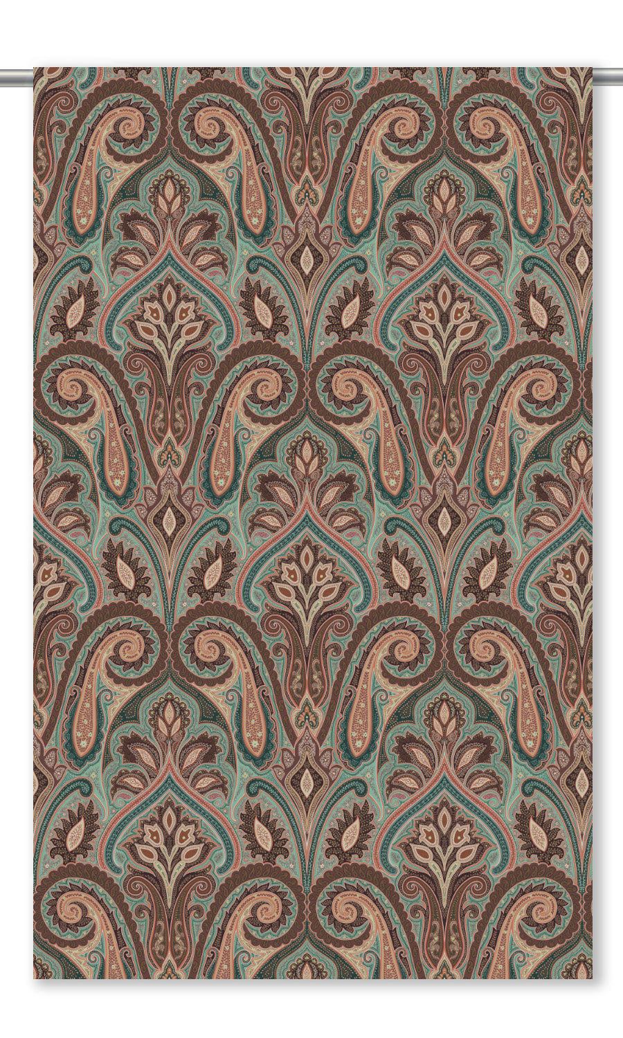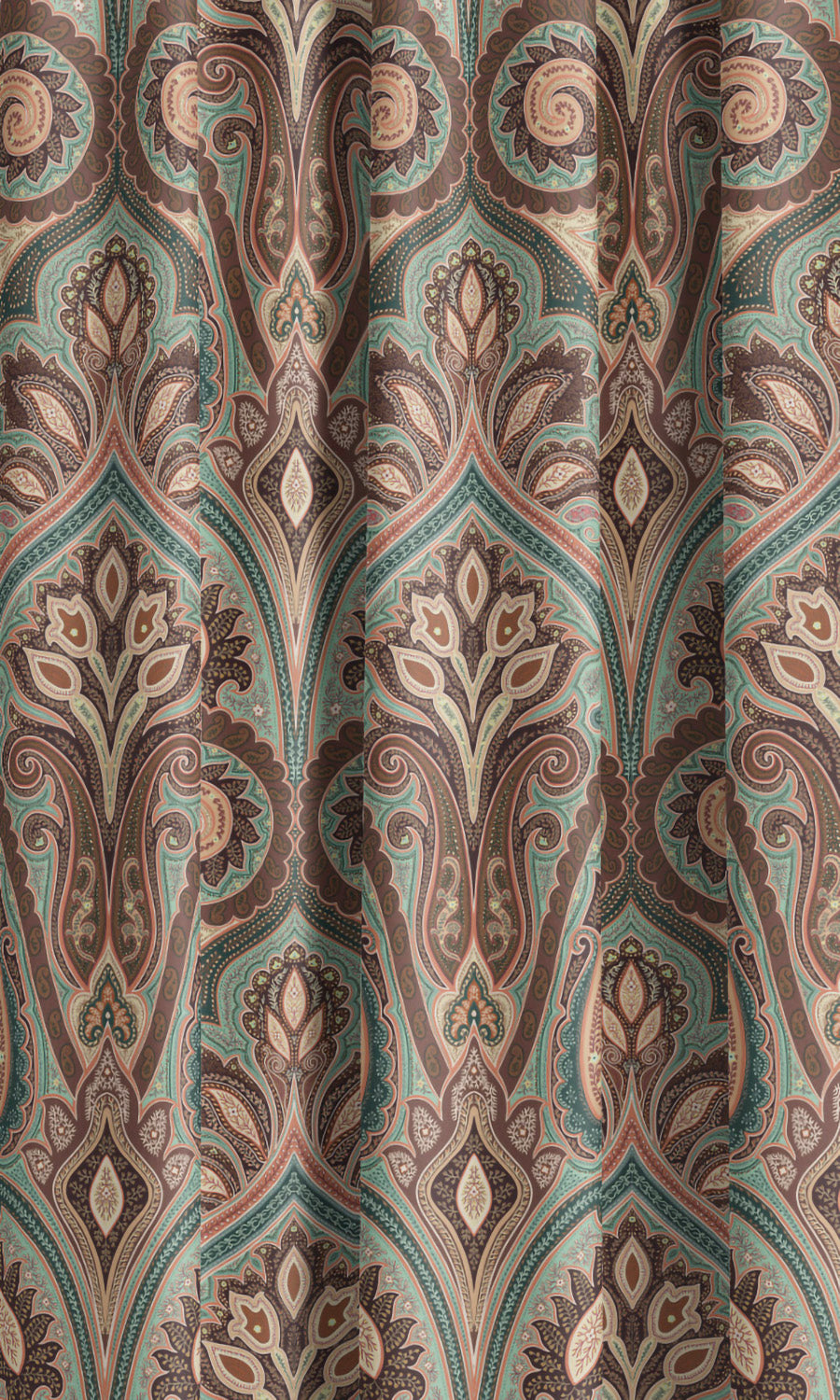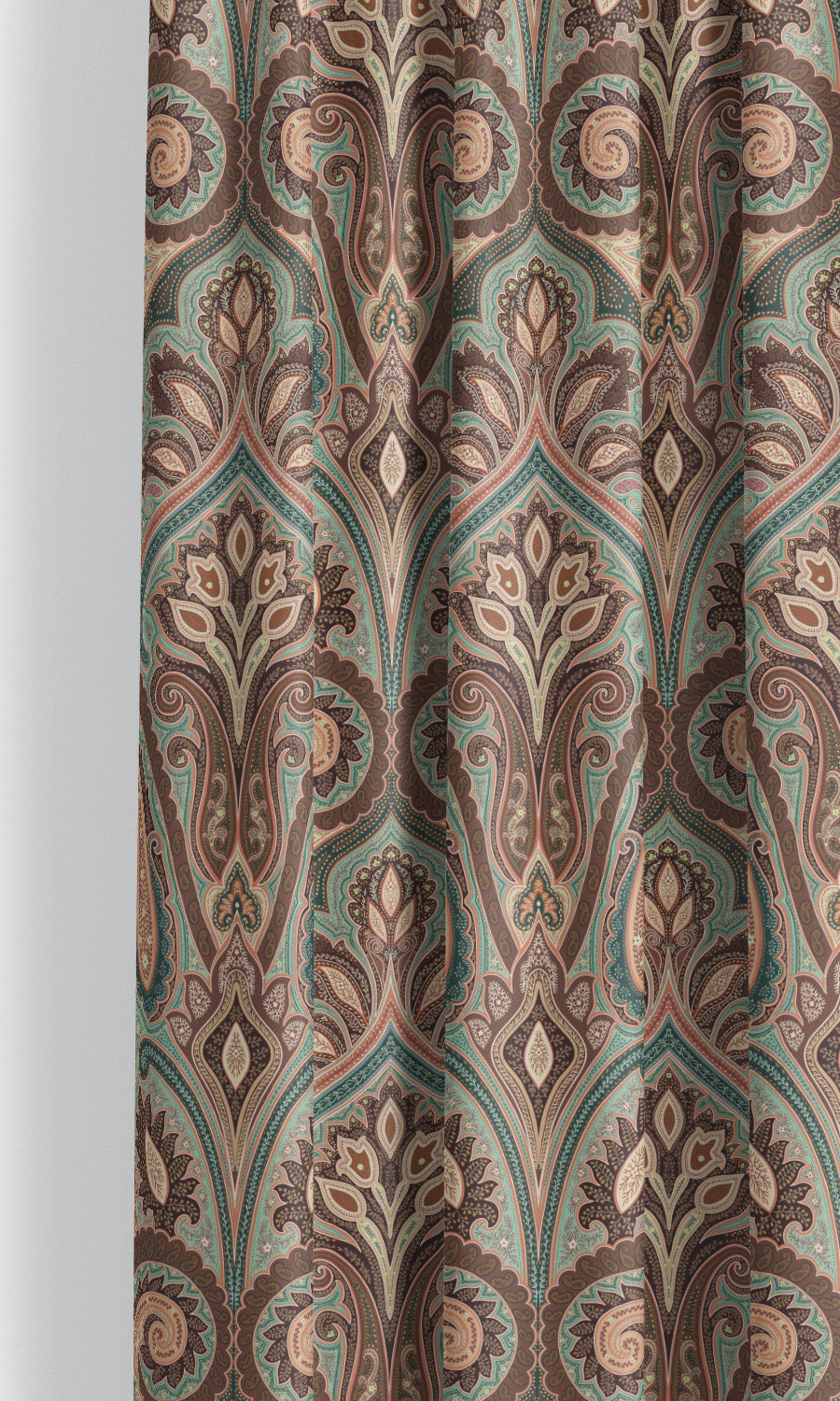 - Pair with traditional hardware: Elevate the regal appeal of these paisley damask velvet curtains with ornate brass or bronze hardware. Look for sculptural detailing and decorative touches that underscore the classical elegance of the motif and complement the drapery with the grandeur it deserves.