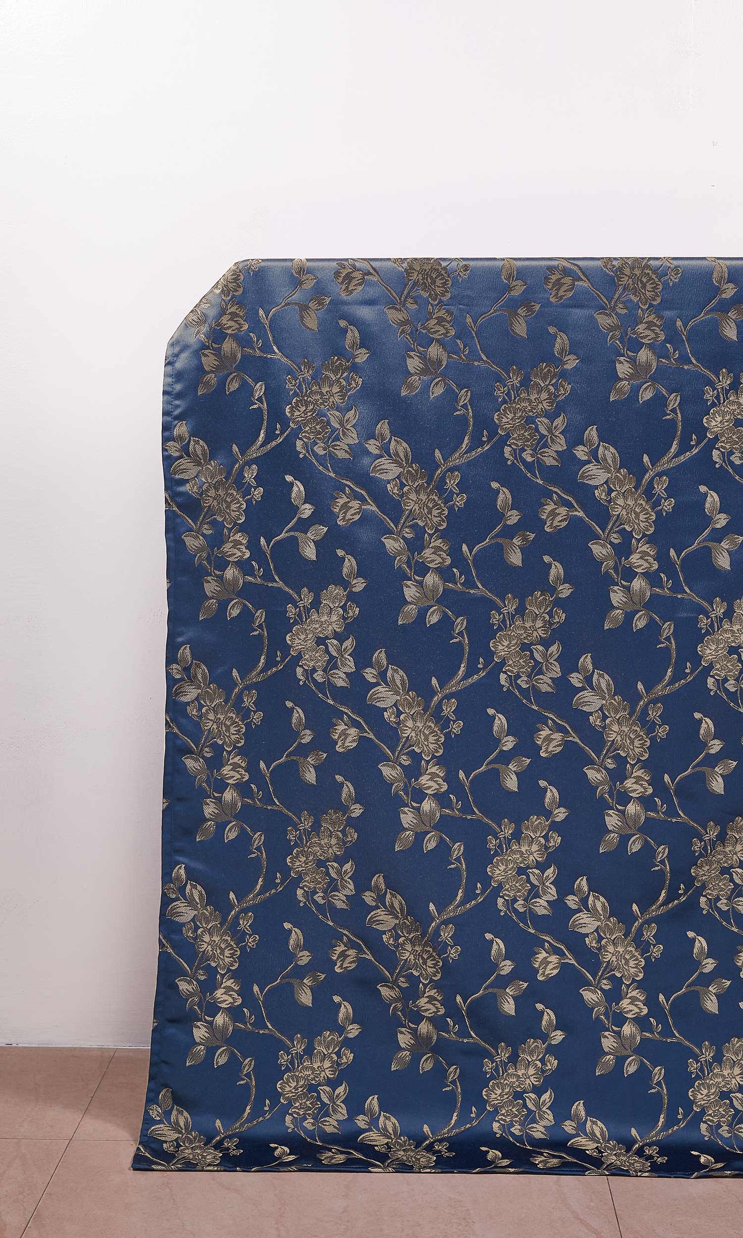 This beautifully self-patterned and emboss printed fabric portrays a profusion of gorgeous gray blossoms, buds, branches and leaves on a striking navy blue backdrop. The self-patterned weave with intricate textural details and the raised embossed effect give these curtains a uniquely charming look. Very eye-catching!