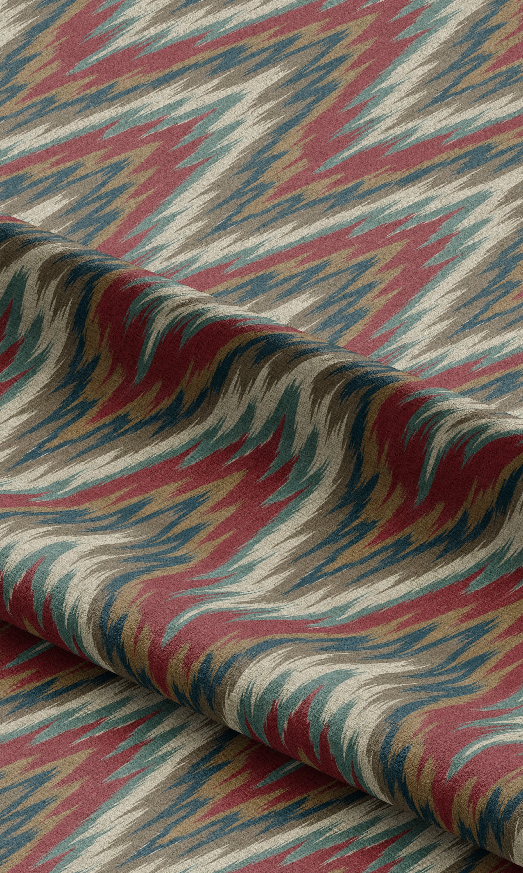 • Its ikat chevron print, where smudgy lines meandering rhythmically, exude eclectic beauty