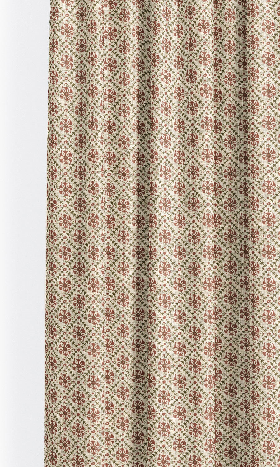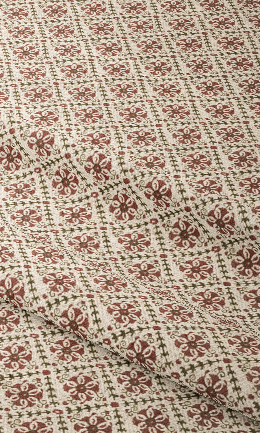 - Style in European relaxed folds: Dress Rosy Dusk floral lattice roman shades in the European relaxed fold style to accentuate their cottage-ish charm. This fold style features a gently curved silhouette that echoes the easy grace of the country aesthetic where everything feels nature-inspired and lived-in.