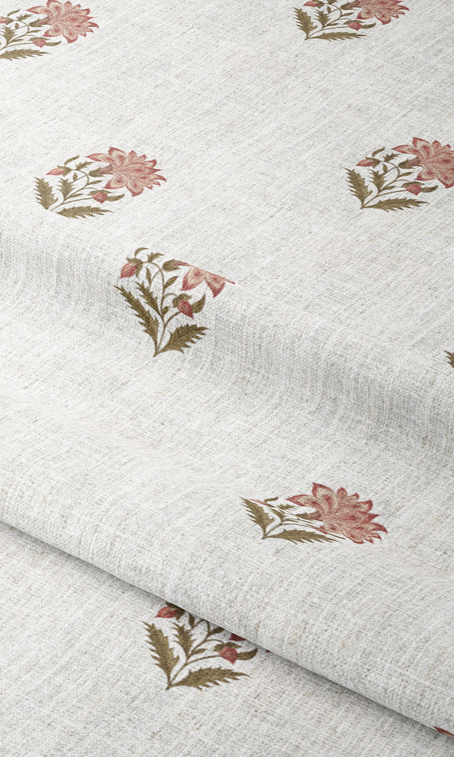 - Blush red and olive brown paint a floral tableau on serene cream, evoking soft, timeless elegance