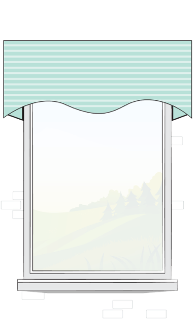 The valance dipping so gently at the scallops is its highlight feature. Garnishing this window valance with suitable trims is highly recommended to fix the spotlight on these dreamy curves. The flat, pleat-less surface of this style facilitates both plain and patterned fabric. So, this style can suit a vast variety of drapery fabrics - be they solid, patterned, printed or textured.