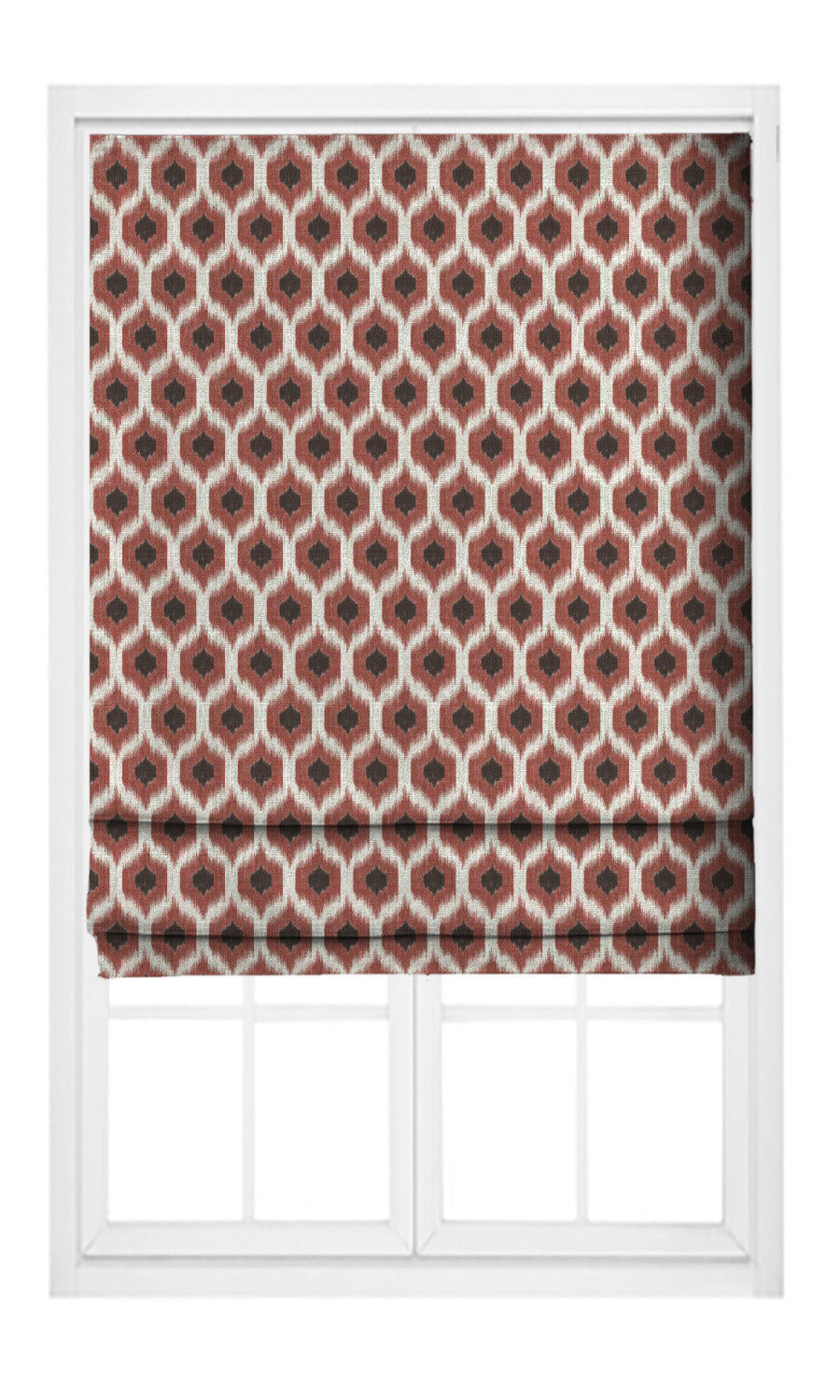 - Enhance eclectic personality: Weave in an eclectic spirit into your decor with Scarlet Grace ikat-inspired roman shades. Their ethnic motifs echo oriental craftsmanship and artisanal heritage, layering your home with warmth and authenticity. Pair them with kilim rugs, tribal accents, and woven textures to create a space that feels both rooted and collected.