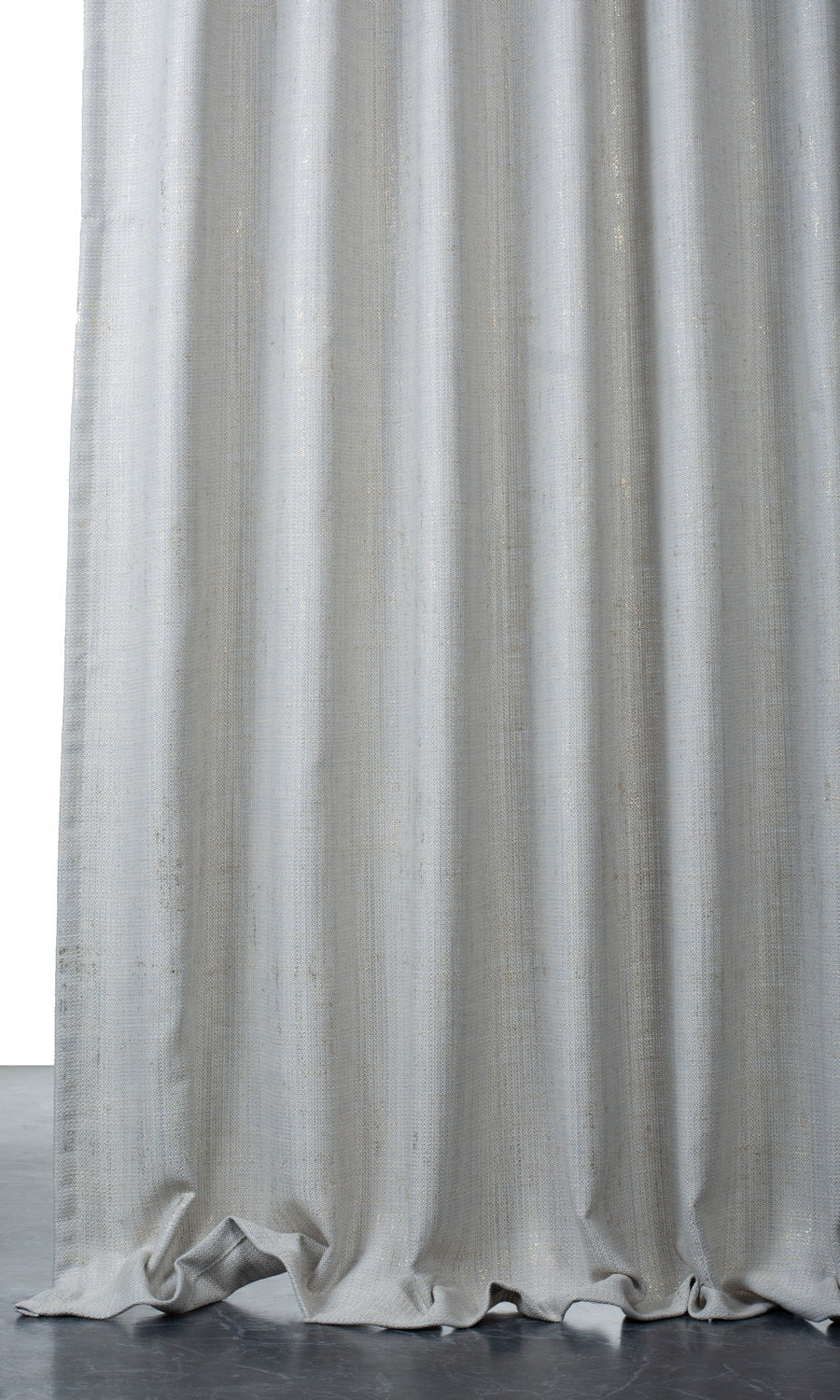Understated' and 'evidently glamorous' - words to be said in a single breath only about this quiet beauty that loads the sparkles of golden accents on its greyish-blue backdrop. Its abstract print of random metallic dabbles brings a shimmering effect that is elevated by its lustrous finish. Crown your modern decor home with its 'muted resplendence' and trust its linen-blend composition for making your window dressing dimensionally stable and sturdy.