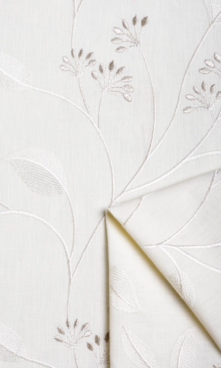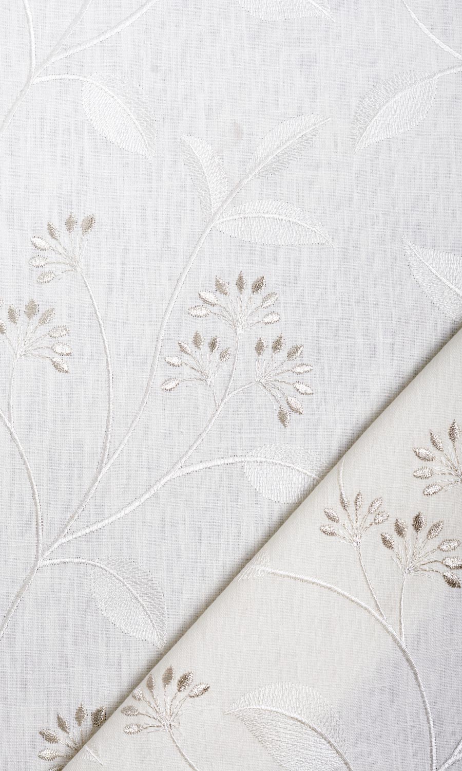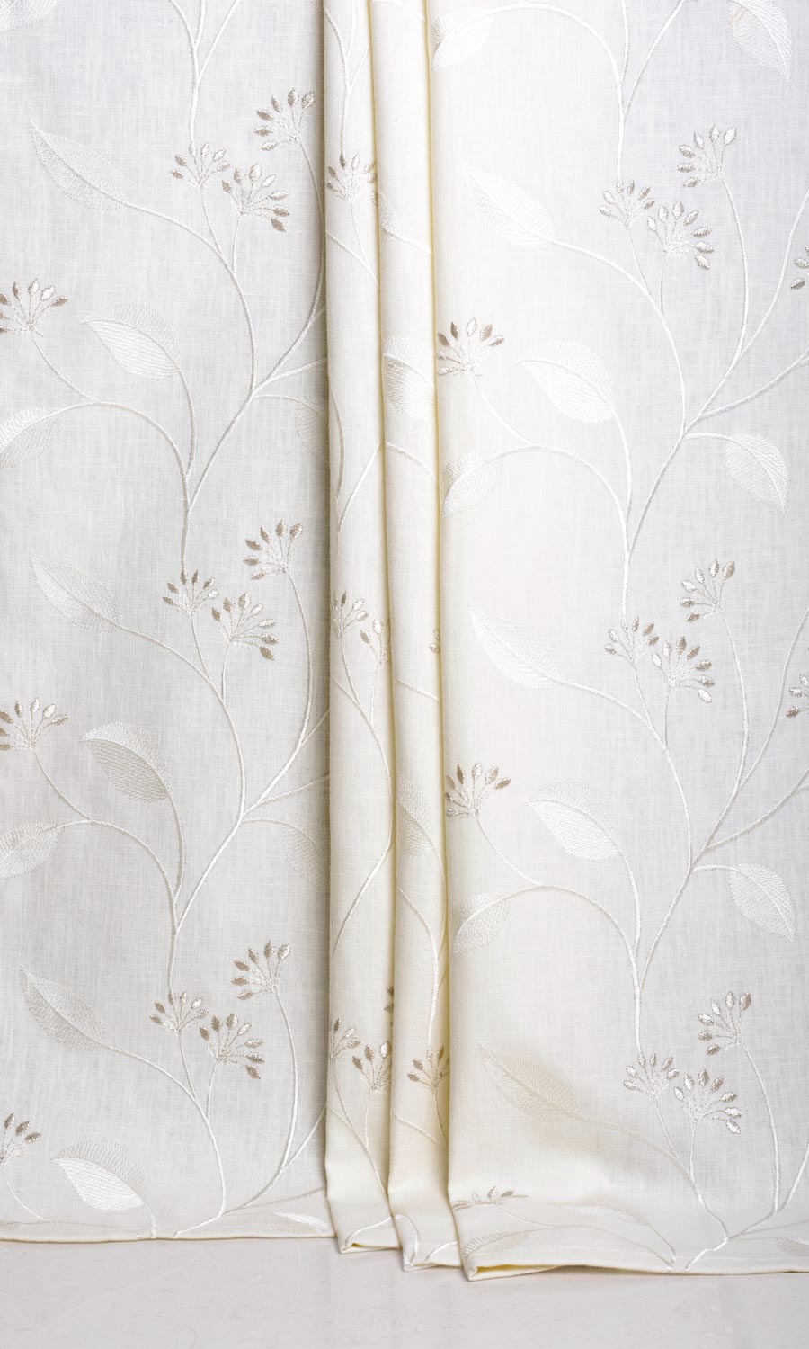 Speaking more with few words, this cream drapery fabric presents floral motifs with subtle contrasts and artistic finesse. Leaves and blooms on slender stalks, embroidered delicately in tones of white, give off the sophisticated flair of the nature theme impressively. The neutral palette ensures easy blending with diverse color schemes and decor styles.