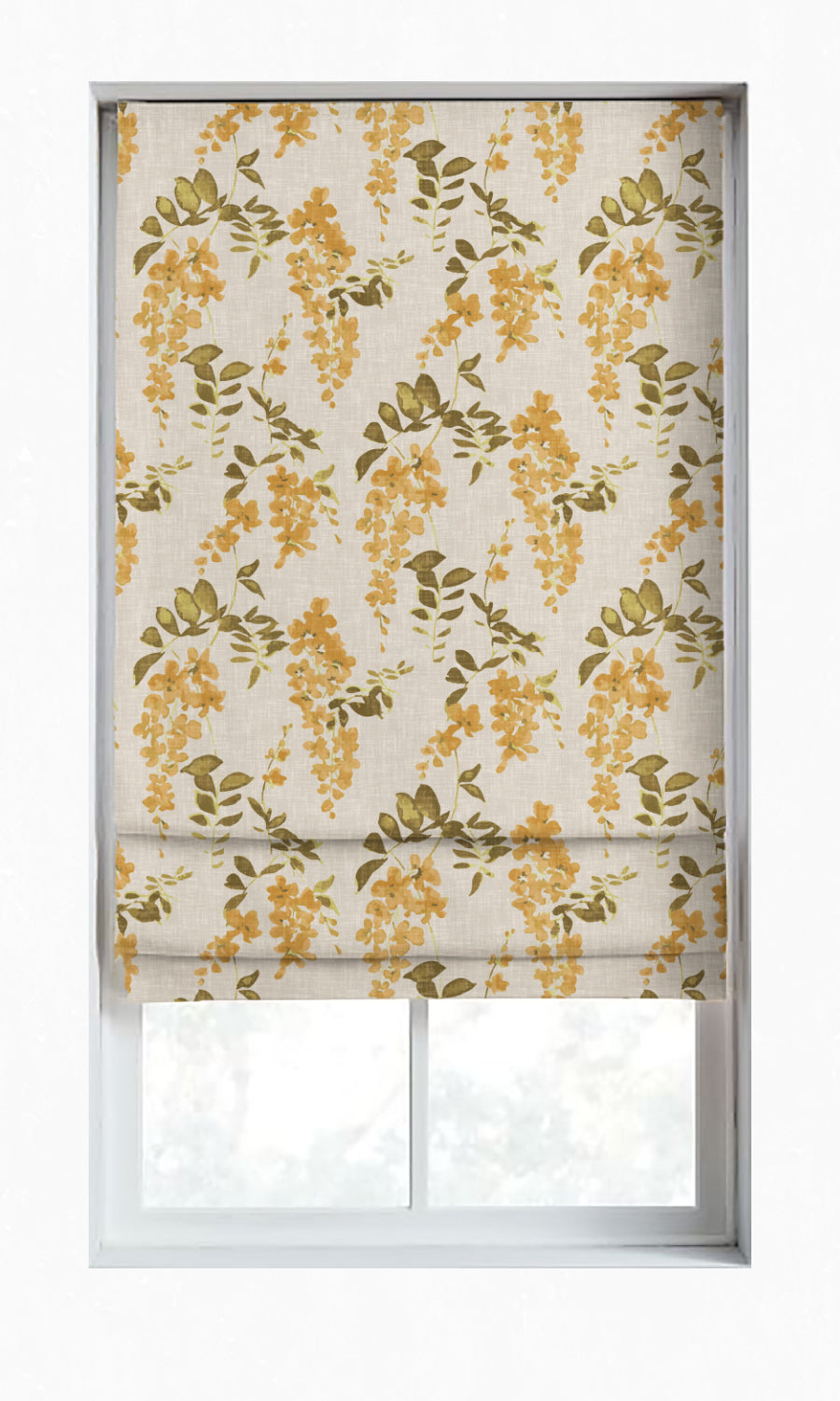 Lend a garden-inspired touch to your living space with this flower-strewn flatweave fabric, while it blocks out unwanted sunlight, making your space so much more tranquil. Brimming with botanical elegance, this fabric features springs of honey yellow blooms on a background of pale grey. Great choice for bedrooms, nurseries and south facing living rooms.