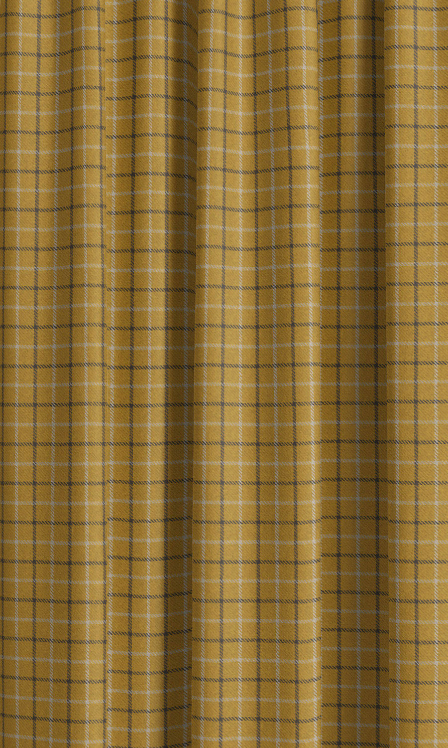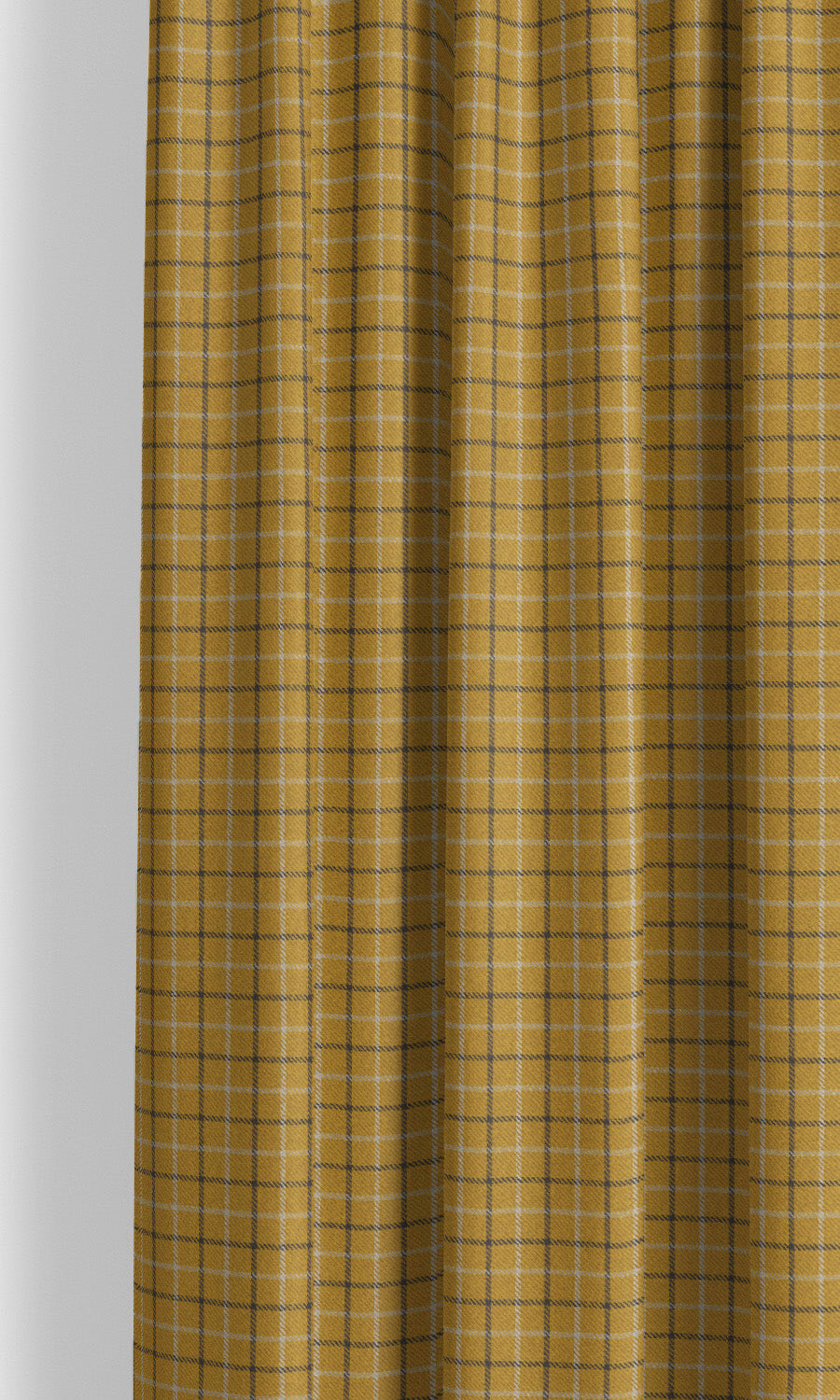 - Incorporate visual warmth: Use these ochre check velvet drapes to cozy up a space dominated by cool tones. Their warm tones, coupled with the timeless elegance of checks and the plush naps of velvet, cocoon the room with comfort and homey elegance.