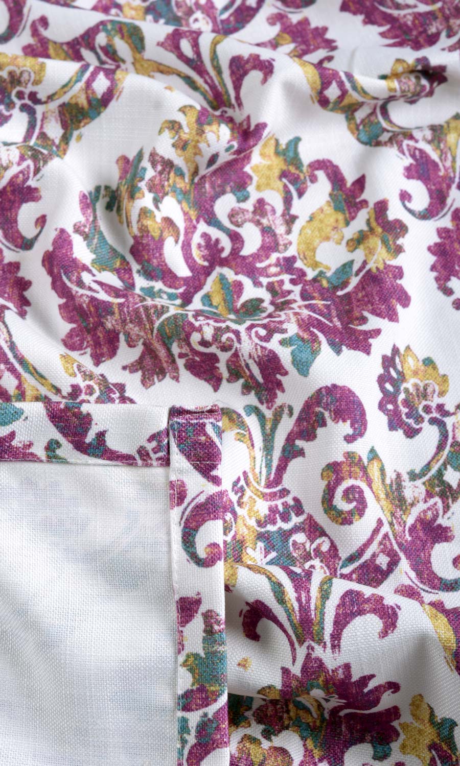 If intricate detailing moves you, you can’t walk past this jaw-dropping damask fabric! A generous helping of magenta purple and tinges of gold and teal blue make sure that this window treatment will be a conversation starter for your visitors. Classically-styled extra-large living rooms and open-plan homes stand to benefit immensely from such bold-patterned drapes and roman shades.
