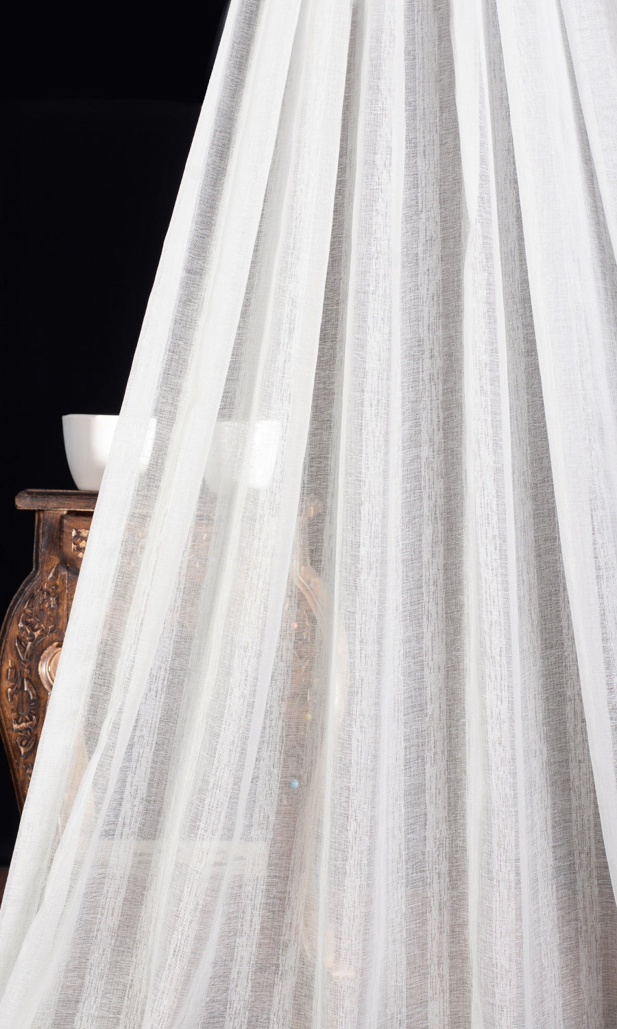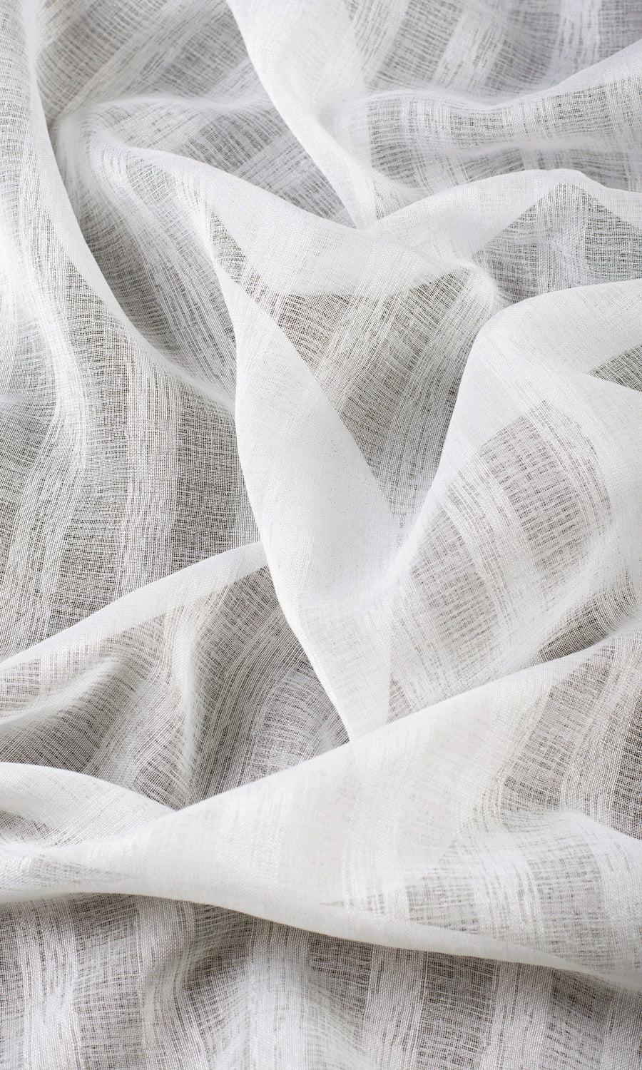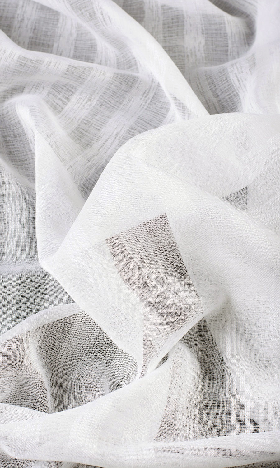 The epitome of simplicity and ethereal charm! A pure white sheer with a wee bit of detail hidden in its textured stripes, 'Serenella' offers the dreamy elegance that sits right in a coastal home, a country cottage and a modern condo with equal ease. Light, breathable and timelessly elegant, this sheer is characterized by a calm, uncluttered visual appeal and guarantees privacy during the day while welcoming light.