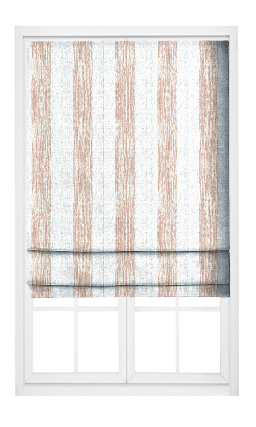 - Mount outside to optically elongate the window: Accentuate this striped roman shade's ability to add illusive height to the window by mounting it outside the window frame/recess, and positioning it a few inches higher. The upward momentum of the striped pattern, together with the raised visual line of the shade, makes the eye gravitate upward and elongates the window optically with double efficiency. This comes with an added benefit for small windows, as the shade completely clears off the window, bringing in more light and air than it would with the shade blocking a portion of its pane.