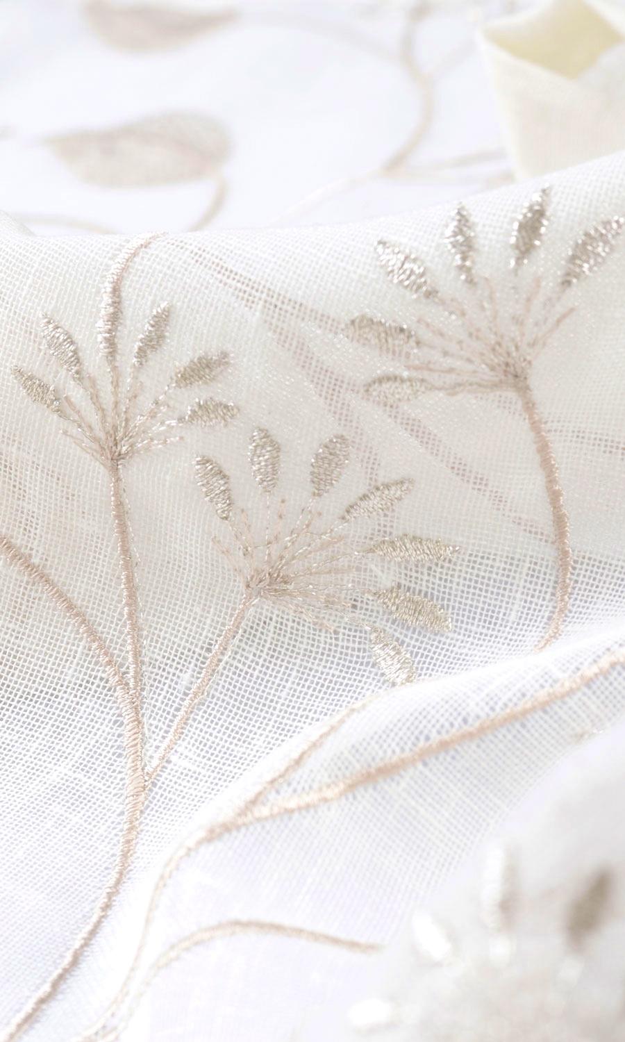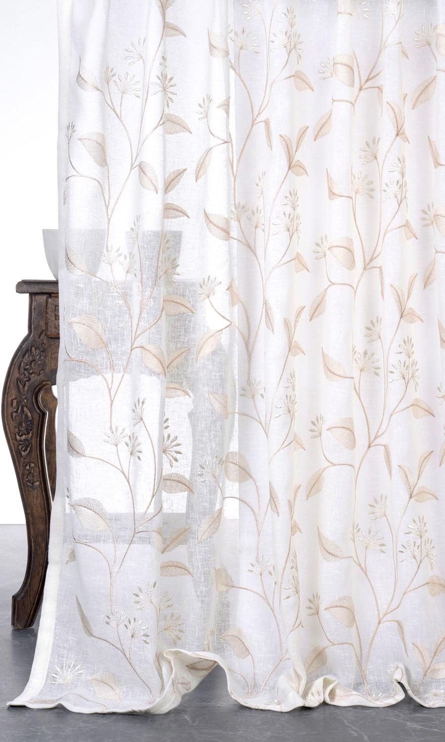Floral sheers in quiet neutrals! Offering a modern twist to a traditional motif, florals take a streamlined neutral-toned avatar in this white-beige sheer, making it suitable for both traditional and contemporary homes alike. Make use of the transparency to add daytime privacy without blocking all light!