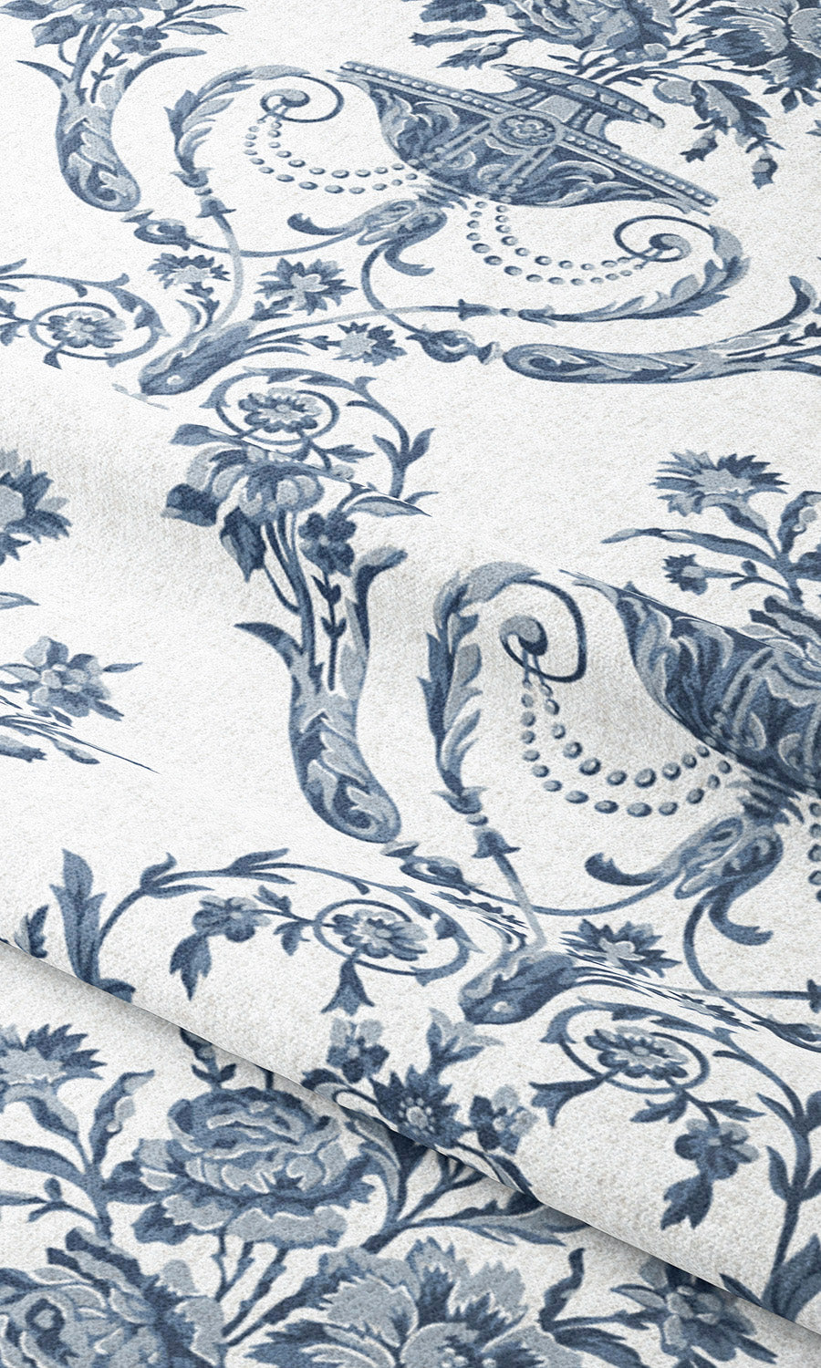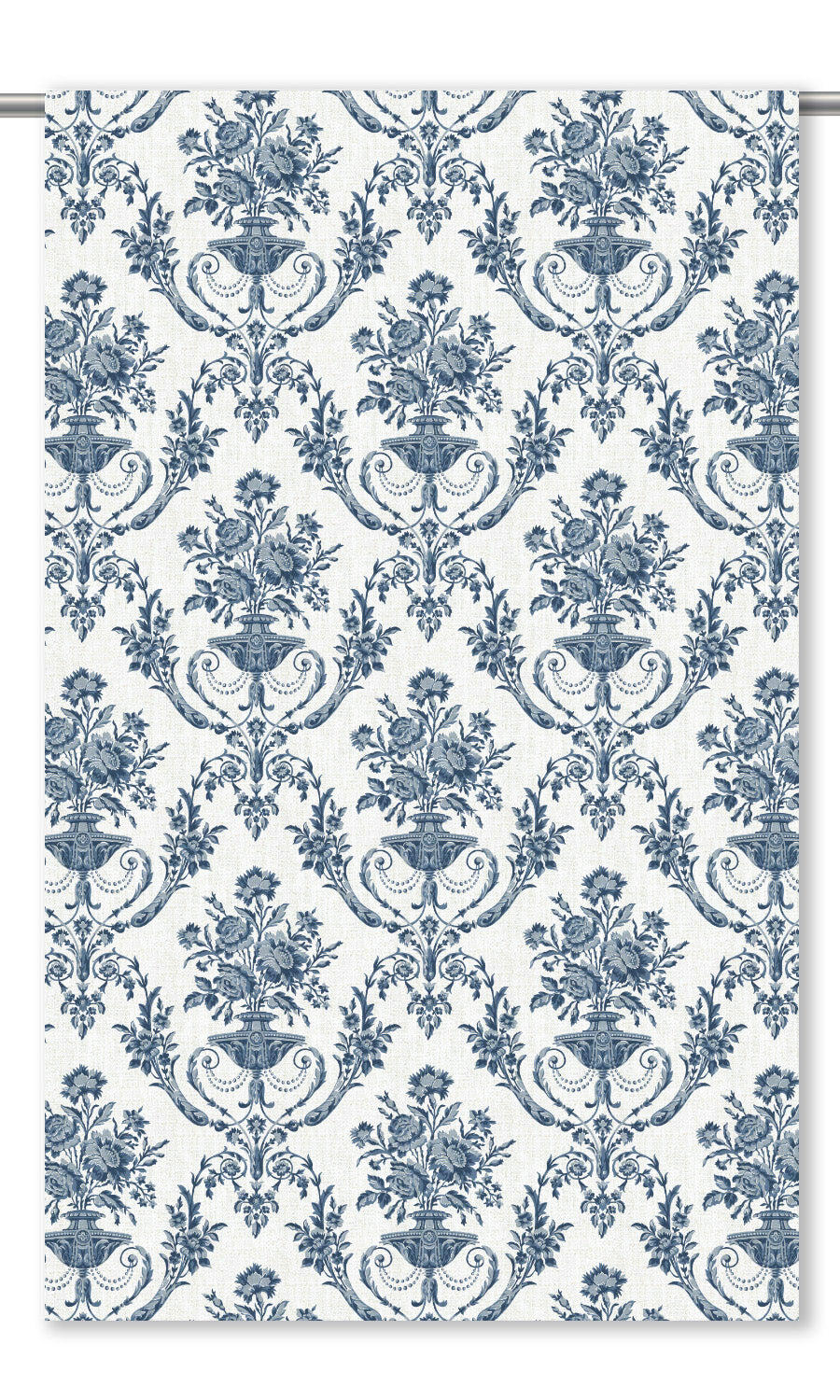 - Its damask toile print, where ornate urns with luxuriant blooms are framed by twirling floral vines, bringing vintage charm to modern homes