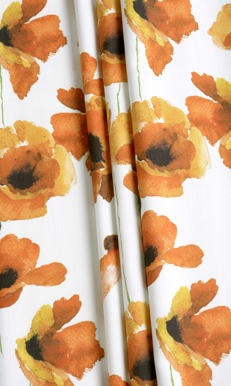 Grand watercolor sketches of poppies on slender stems - a rare contemporary take on a traditional floral theme! The spirited color scheme of white and apricot, and the magnified scaling make window treatments in this fabric an out-and-out choice for spacious rooms! ‘Shimmer’ presents a clever alternative to floral wallpapers if you don’t want the garden theme centerstage all the time.