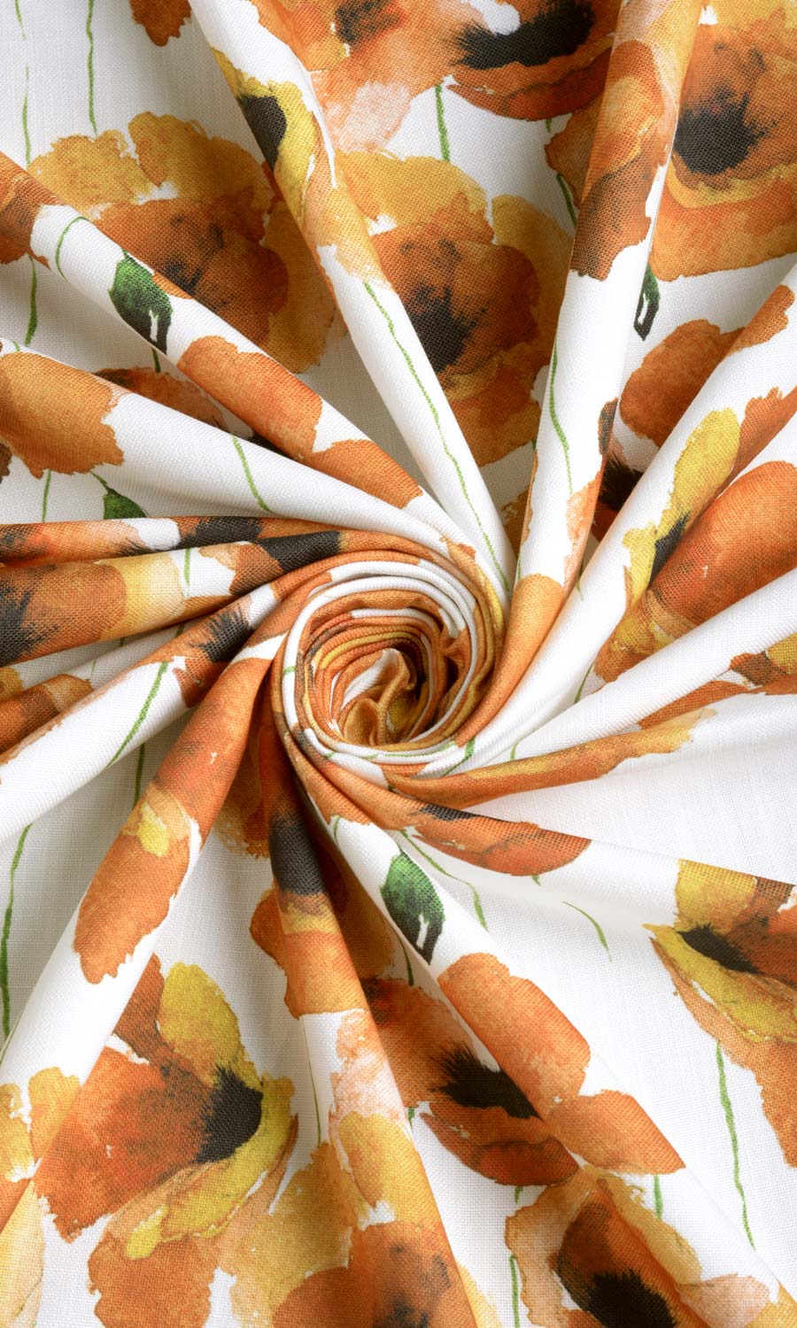 Grand watercolor sketches of poppies on slender stems - a rare contemporary take on a traditional floral theme! The spirited color scheme of white and apricot, and the magnified scaling make window treatments in this fabric an out-and-out choice for spacious rooms! ‘Shimmer’ presents a clever alternative to floral wallpapers if you don’t want the garden theme centerstage all the time.