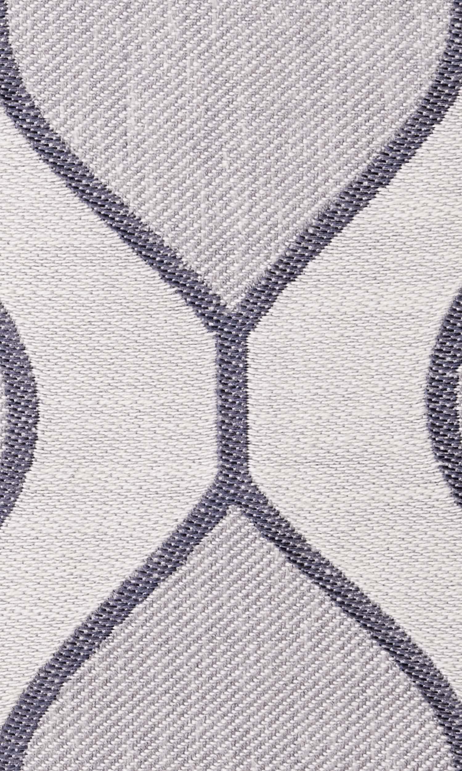 If your decor theme needs something unusual, here is the fabric that can be a worthy option. It has a wave and lattice design in palette featuring white, grey and navy blue. The waves in white edged in navy make for a bold statement look. This fabric is also a great choice for roman shades.