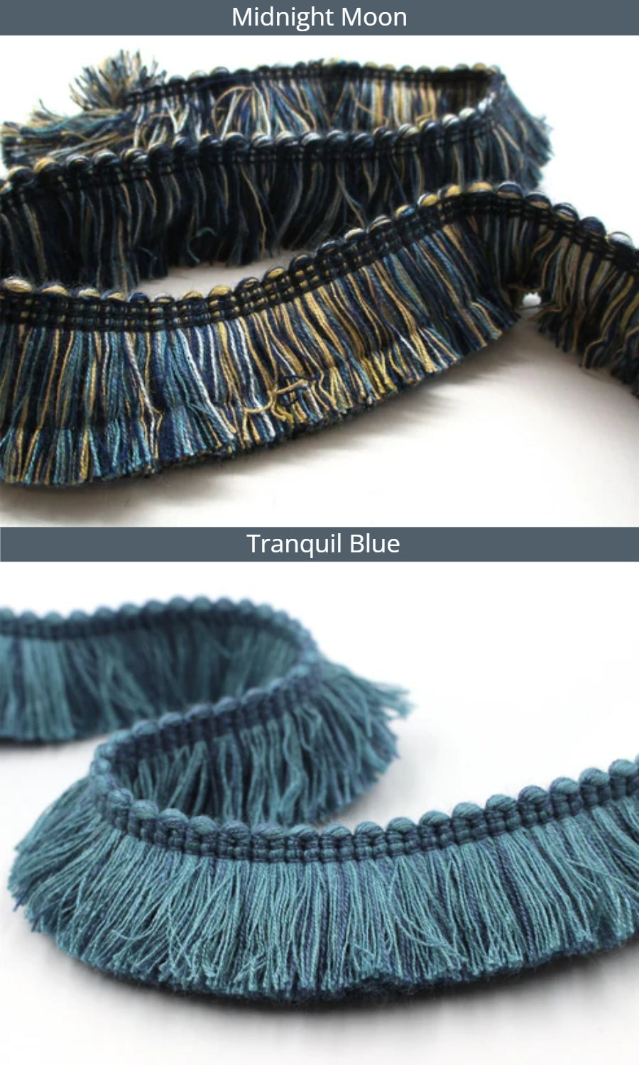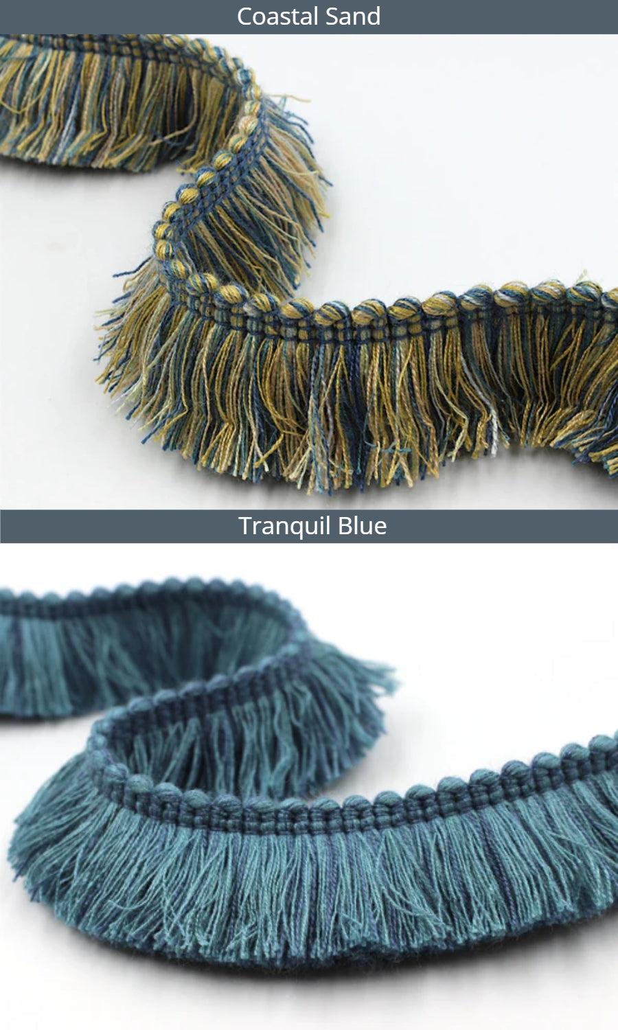 Handsewn on the left and right edges of the curtain panels for a delightful effect, this fashionable trim is available in 16 colorways - giving options for every space and palette. It has a 30mm fringe and a silkier texture than the cotton equivalent, giving it a luxurious feel.
