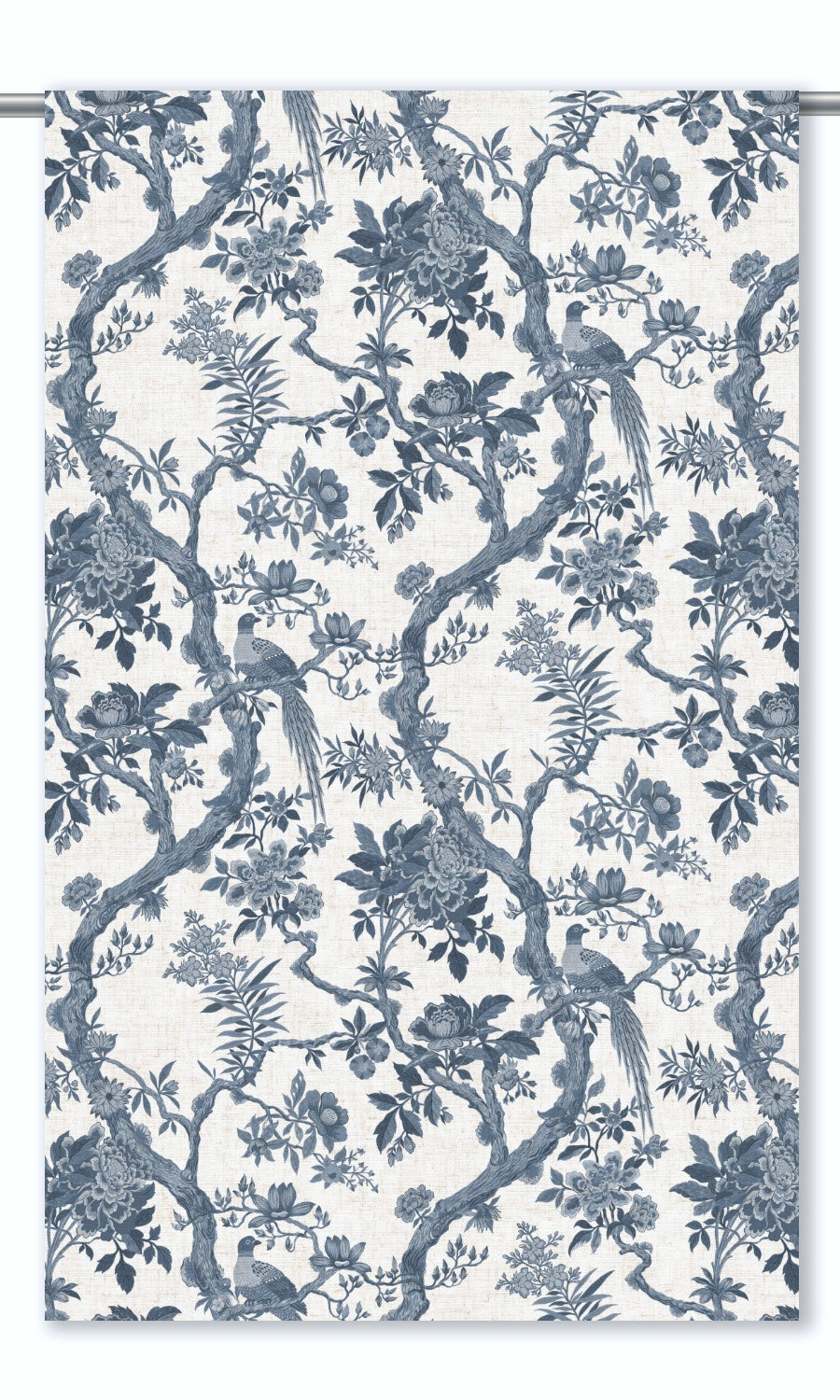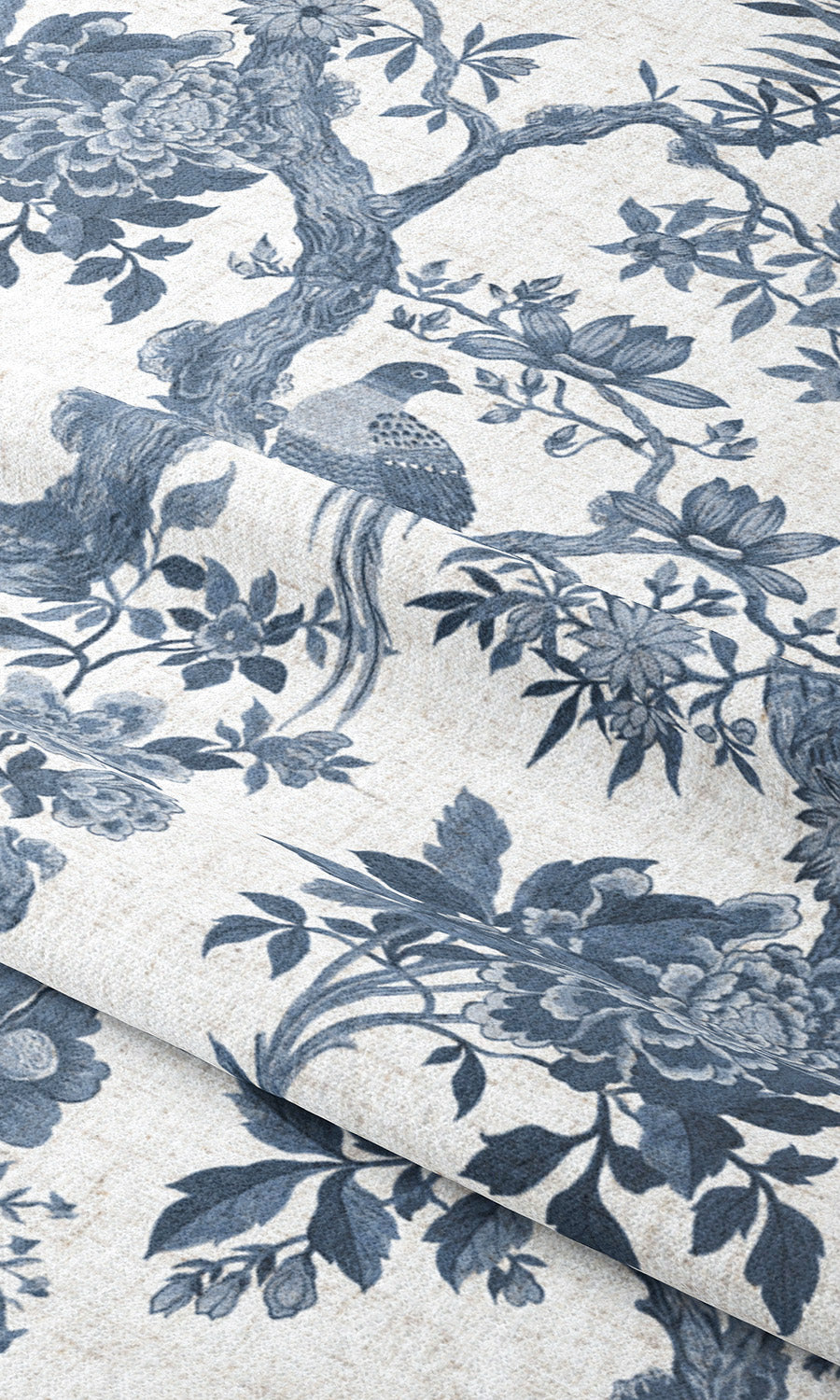 • Its arboreal branches, teeming with lush flowers and songbirds, evoking a classic toile's quiet refinement and chinoiserie's painterly charm