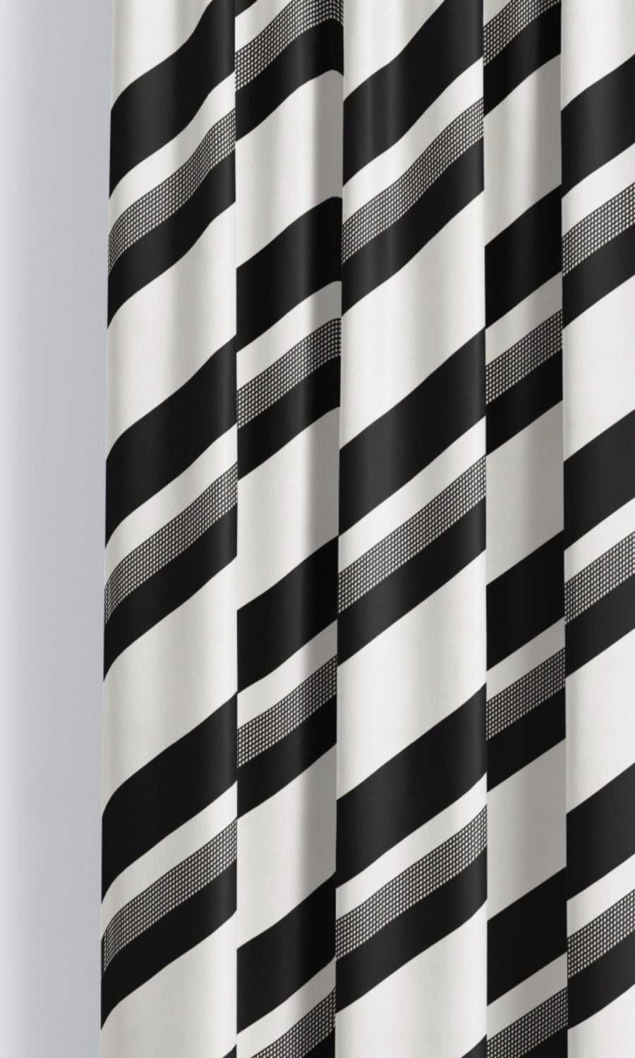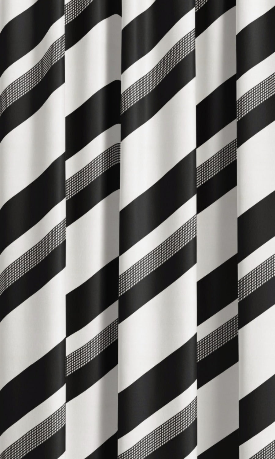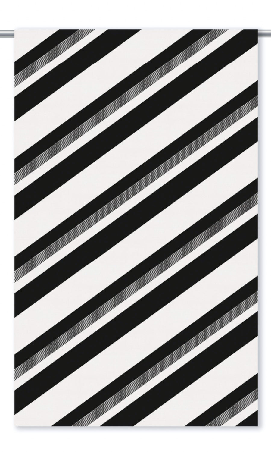 - Balance a vibrant room: Harness the neutrality of Slate Striations black and white striped roman shades to counterbalance the visual energy of bold colors and intricate patterns. Their black and white palette allows vivid tones to take center stage, while their striking contrast and diagonal orientation add drama to the room without overpowering the scene.