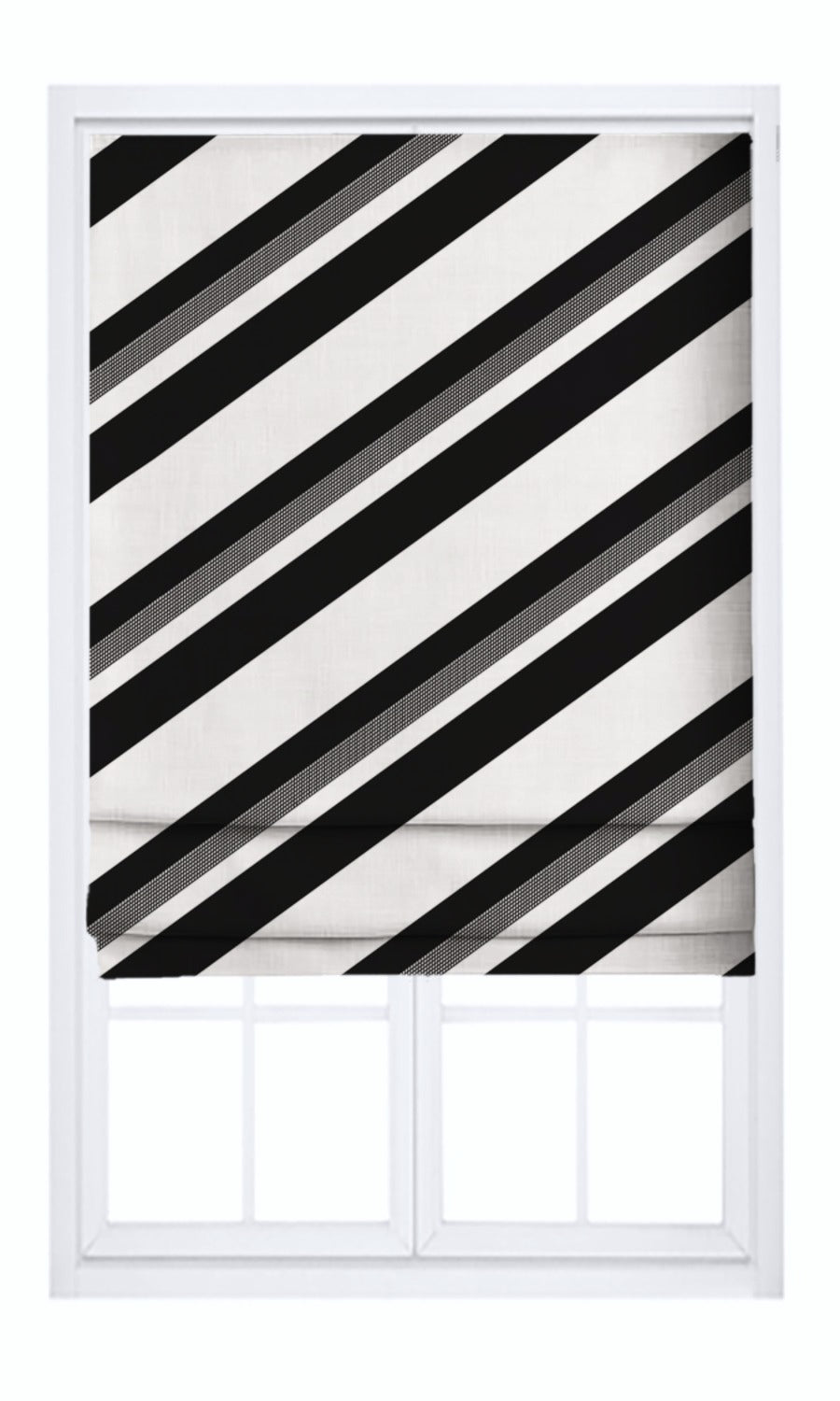 - Choose the back-slatted fold style: Lend the striking diagonal striped pattern of this roman shade a fitting stage with the clean profile of the back-slatted fold style. Its neat frontage, uninterrupted by slats, lends a continuous surface for the pattern to shine, likening it to a piece of wall art.
