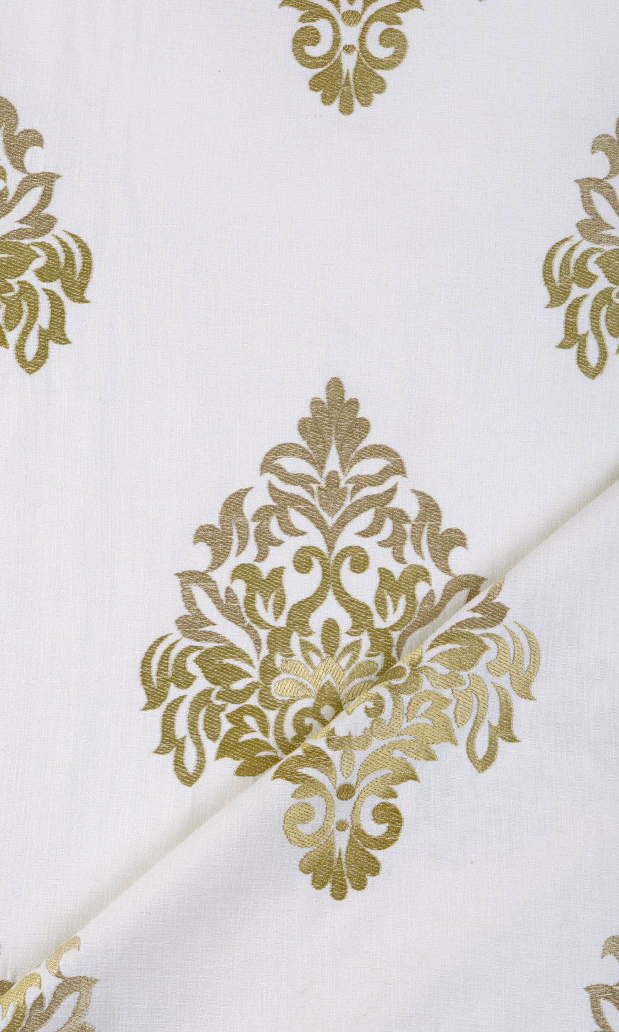 - Awe-inspiring damask beauty in embroidered gold accents