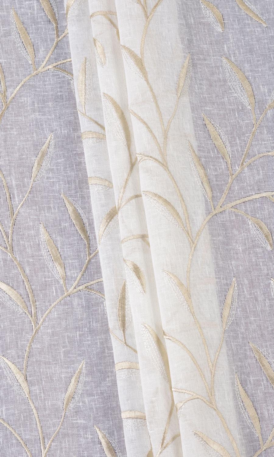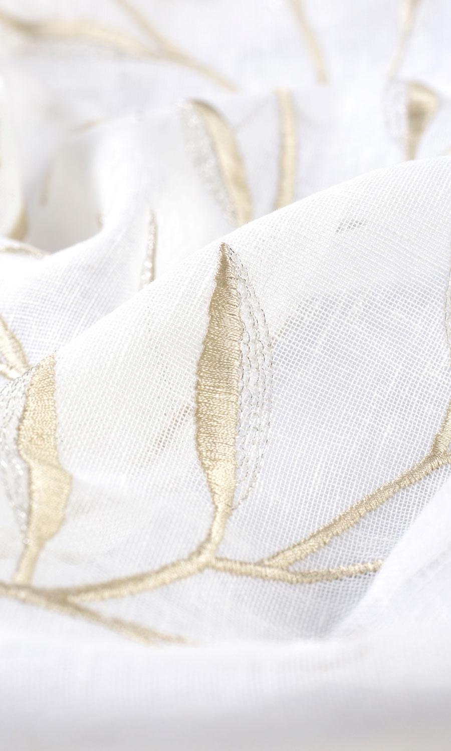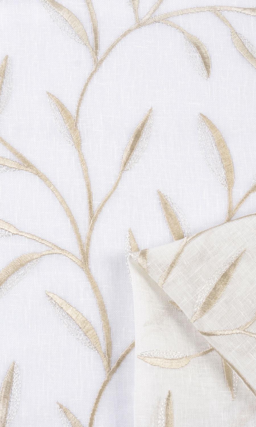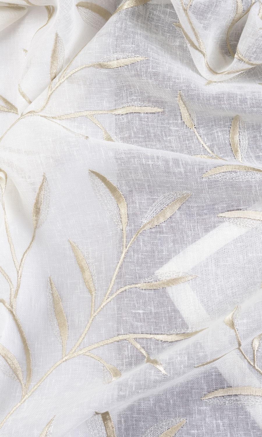 An irresistible white sheer with nimble needlework of slender botanical motifs. If you are a fan of white sheers but keen on something a bit different, Smoothie Snow will be a tempting alternative. Its beige vine motifs add unique character to the space without compromising white's serenity - quietness of modern decor and simplicity of rustic spaces nailed in a single shot. The gauziness welcomes light, the neutral colors spread calm, and the embroidered motifs give a nod to nature's serene elegance - can't get better!