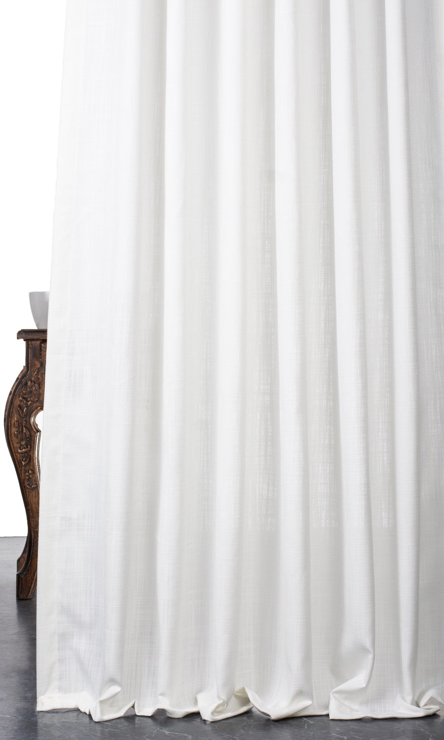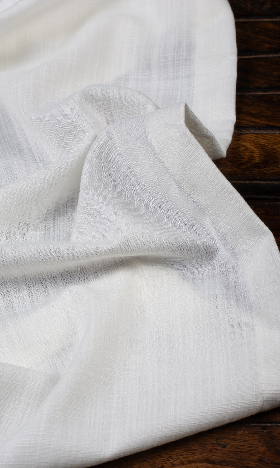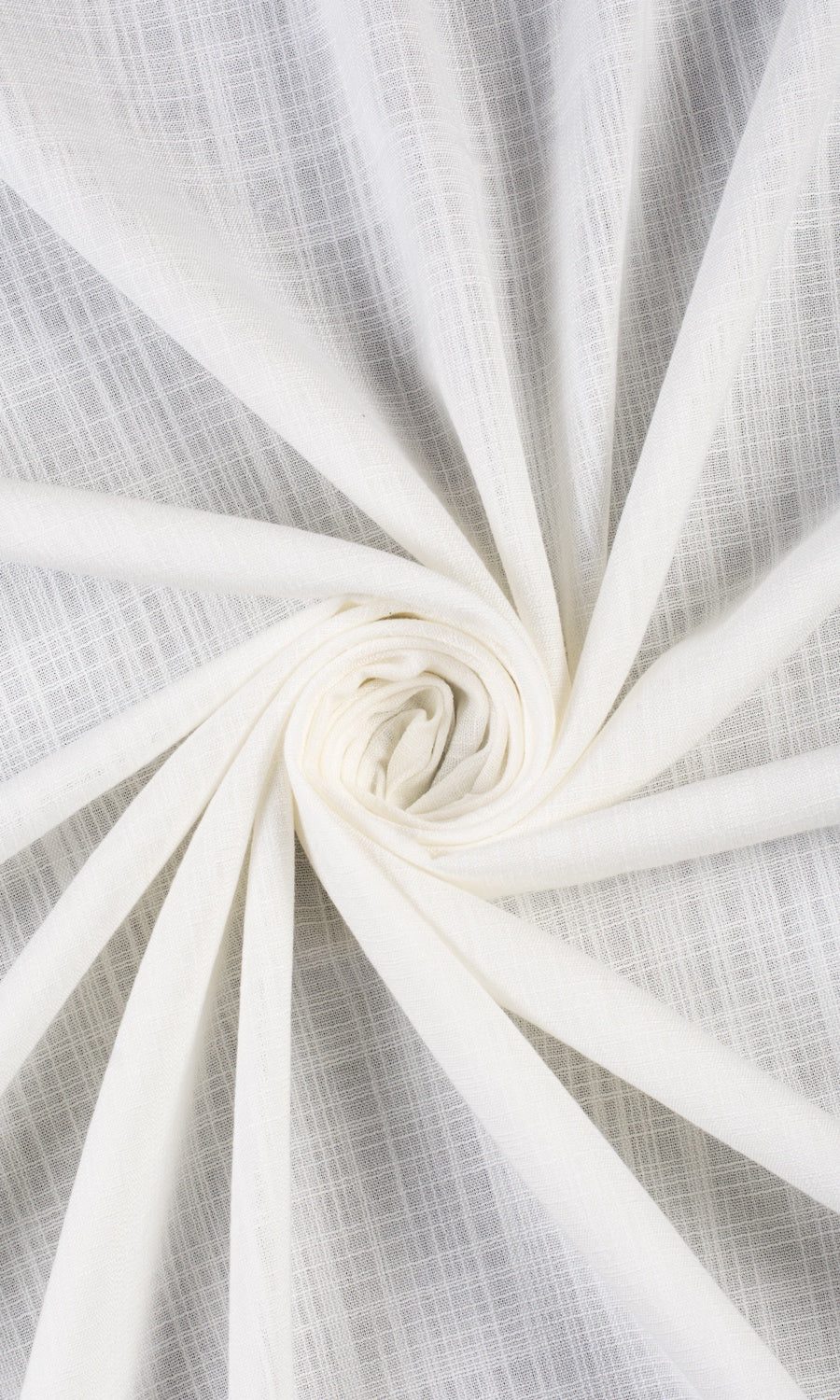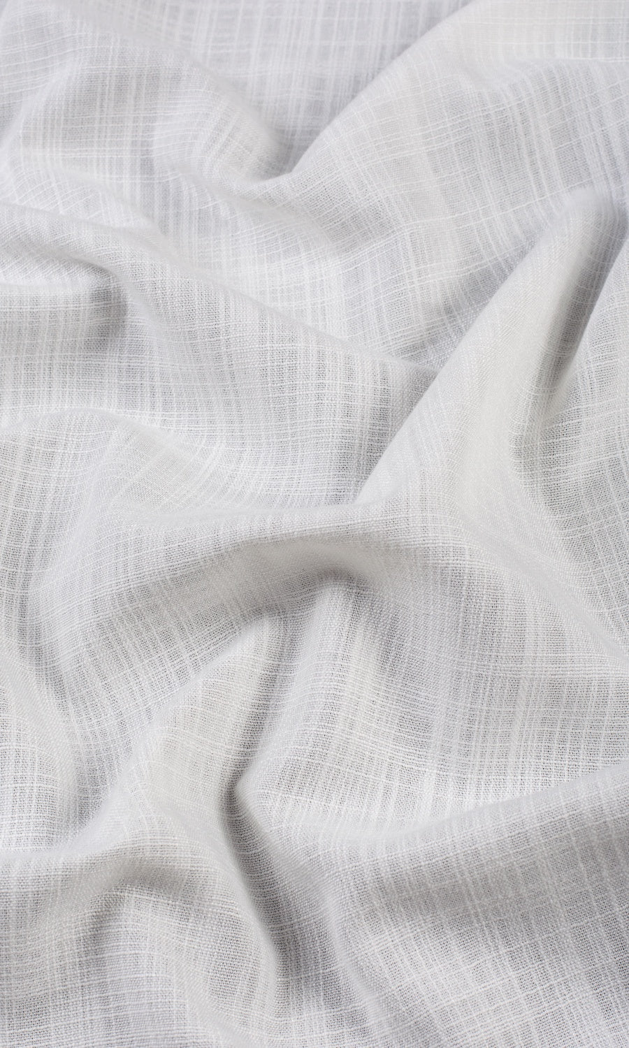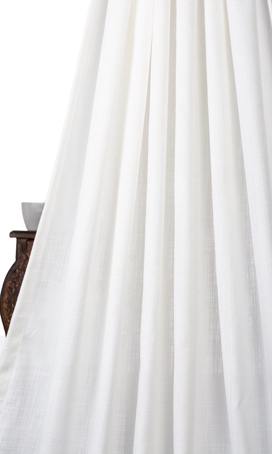 A plain white semi-sheer that transforms simplicity into pure sophistication, wrapping your space in soft, luminous beauty. This gauzy fabric filters light with a gentle touch, creating a serene, airy atmosphere that feels effortlessly elegant. Welcome light and ensure daytime privacy with this ethereal veil for your windows. When lined, this fabric can also provide flawless privacy. 'Snowy Owl' is nothing short of a true celebration, a statement of timeless style, delicate texture, and a whisper of grace for your home.