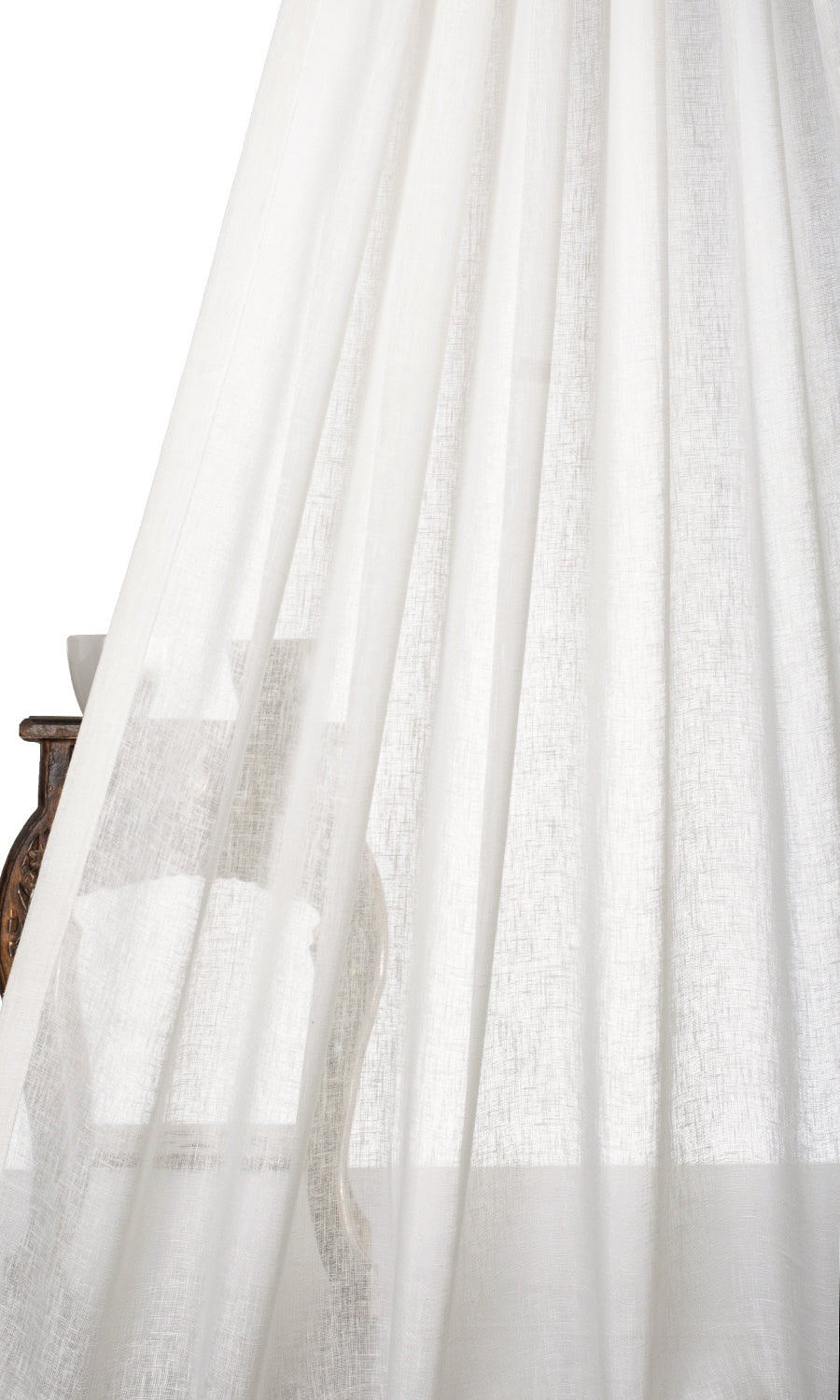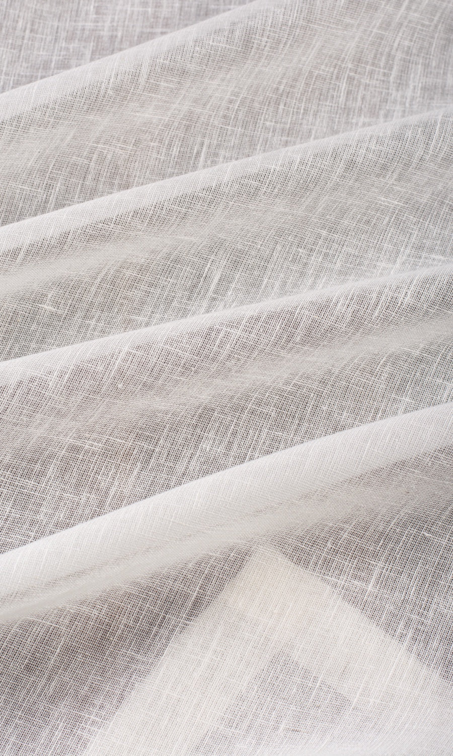 A delicate off-white sheer that exudes quiet sophistication, infusing your space with soft, diffused light. This fabric featuring a gauzy weave and subtle texture gently filters sunlight without compromising daytime privacy. Its tranquil off-white hue adds a touch of warmth to any room, offering a serene and graceful backdrop. 'Soft Ecru' is the epitome of understated elegance — a soft, airy veil that enhances the beauty of your home with its timeless charm, providing both privacy and a radiant, glowing ambiance.