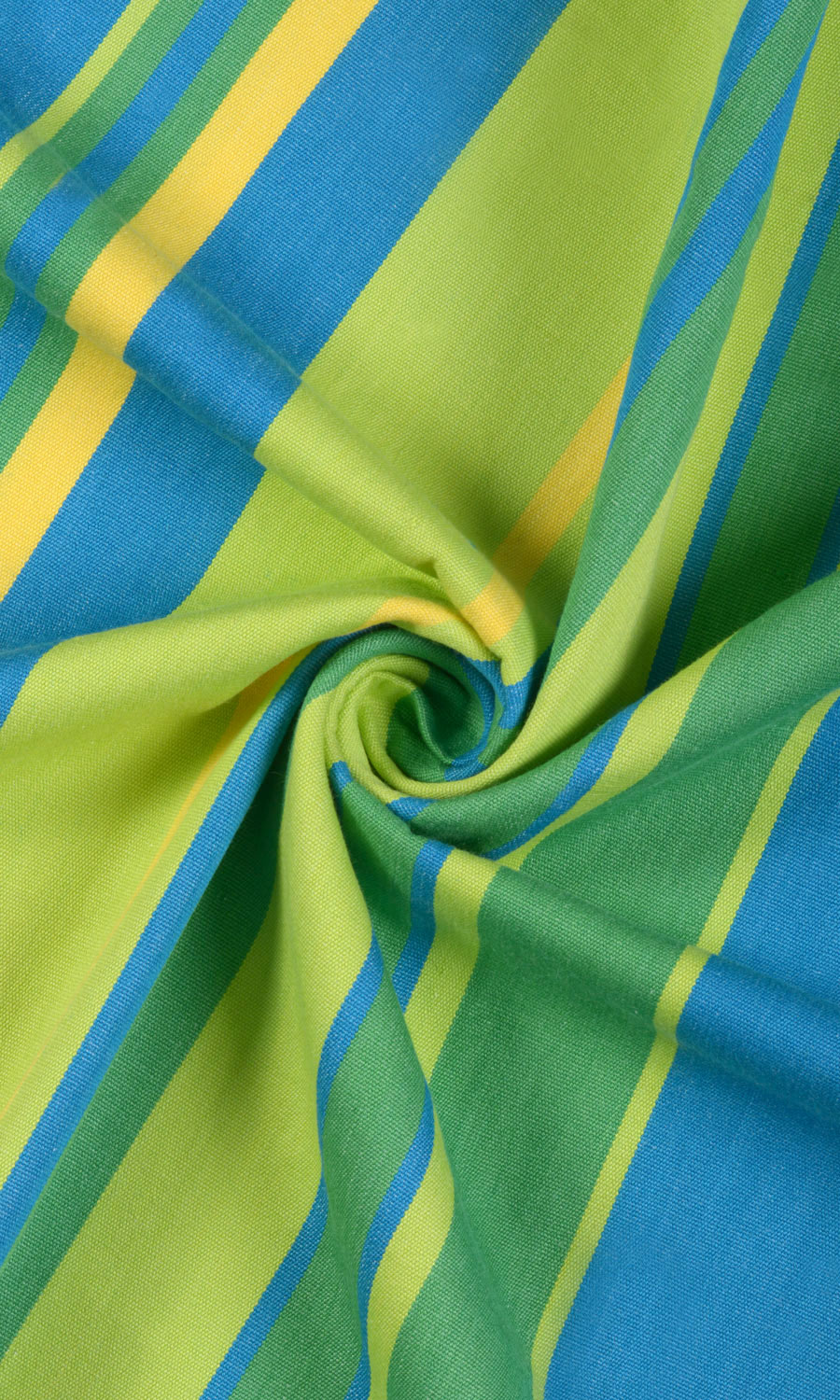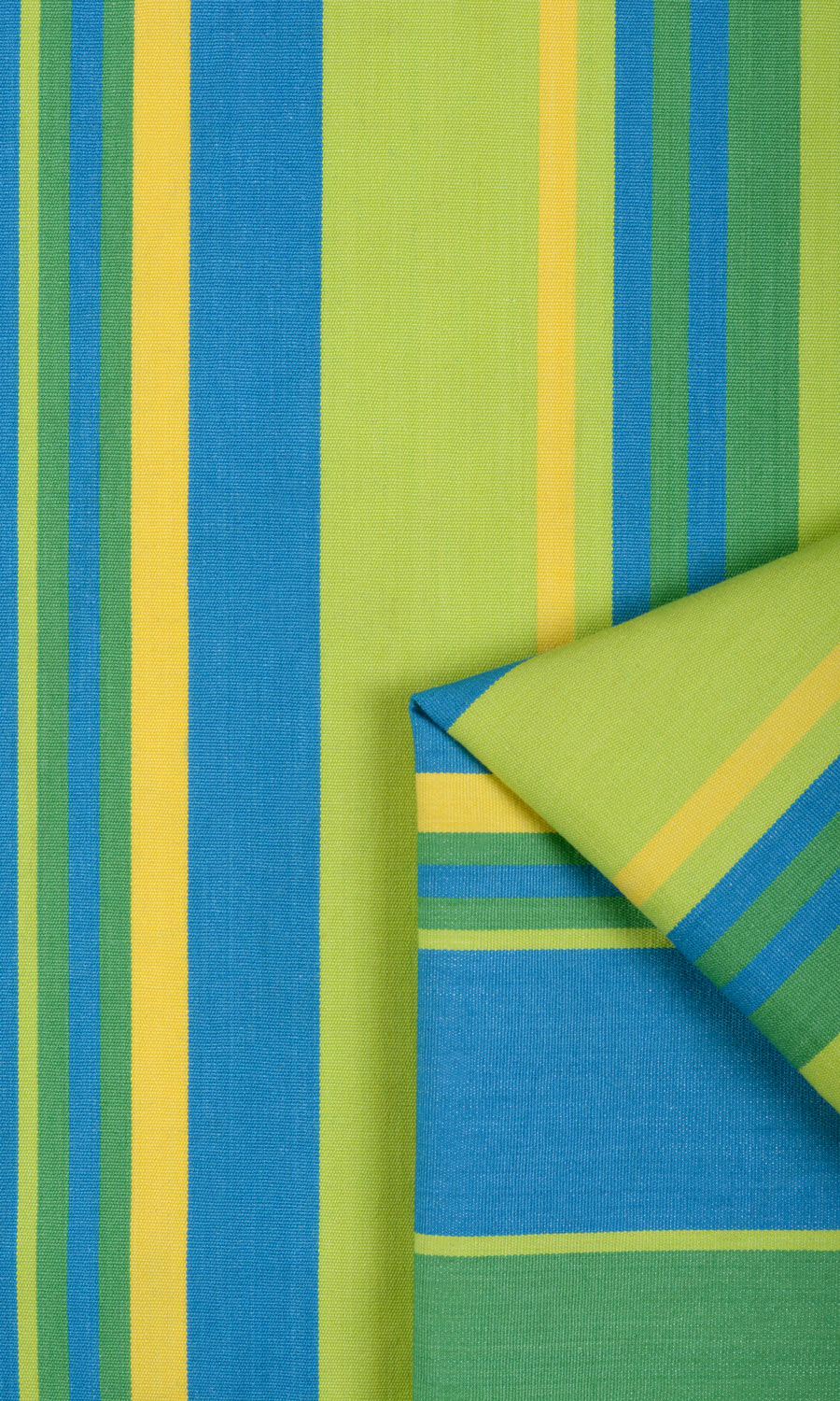 - The rejuvenating presence of bright lime green stripes contrasted by cool blues