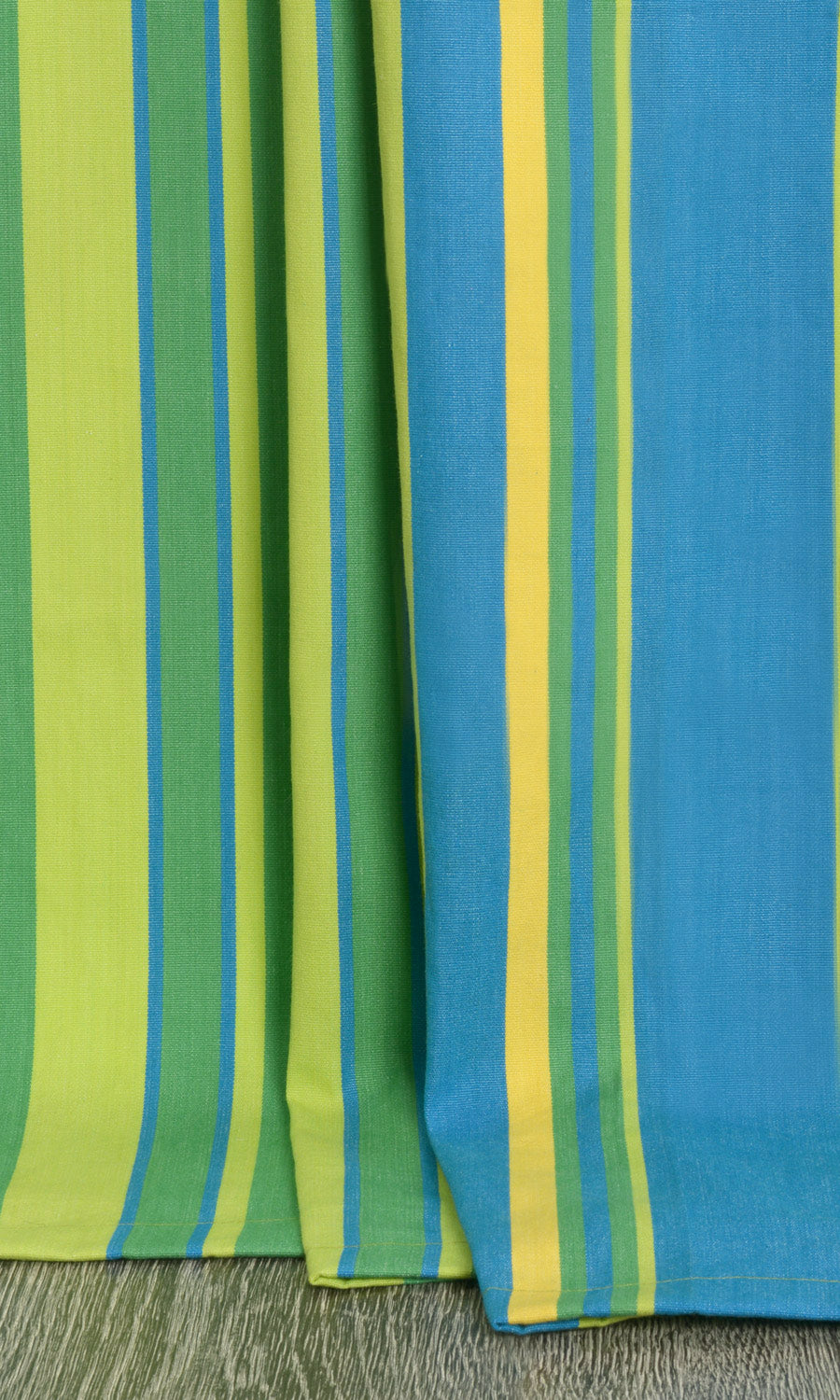 Part of our swoon-worthy cotton collection, Souffle features a vertical woven stripe with plenty of interest. With a raw, softly tactile feel and its body of cool tones of blue, green and yellow, Souffle feels like a modern take on cotton, so relaxed and full of flavor. This medium weight cotton falls beautifully and never fails to impress - no matter what the heading style - from the fullness of pinch pleats, to the minimalist look of the eyelet heading.