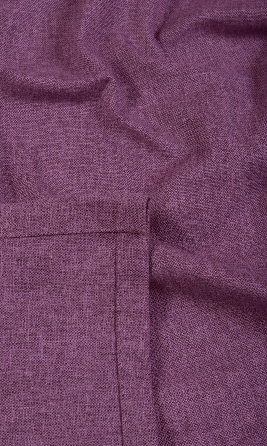Spazio is a textbook example of how beautiful a solid color drapery fabric can look. It is a gorgeous purple color, very mildly tinged with a lighter shade of purple. The poly-cot fabric is long lasting and falls smoothly for the perfect drape. Use it on its own or pair with a complementary textured or printed fabric for a signature look.