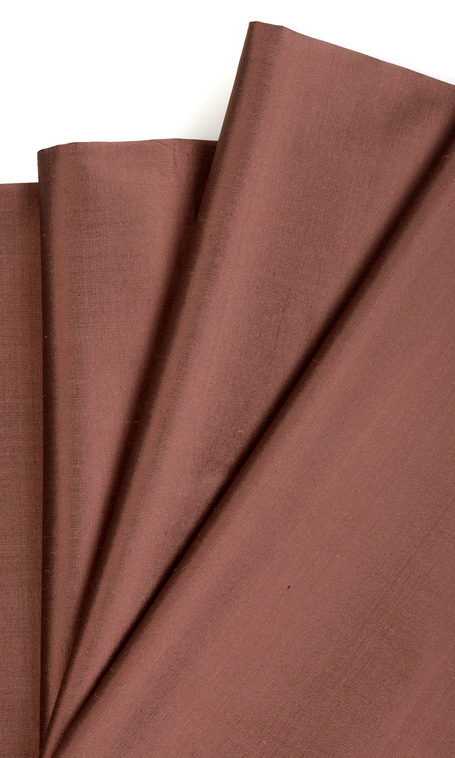 Real luxury whispers, never shouts. Real luxury is always sublime, never over-the-top. In Spice Tan, real luxury has been transformed into a 100% pure silk fabric in a deep cognac red/brown fit to adorn an emperor's boudoir. Highlighted with rich sheen that only real silk can gleam with, this one is pure indulgence for an interior.