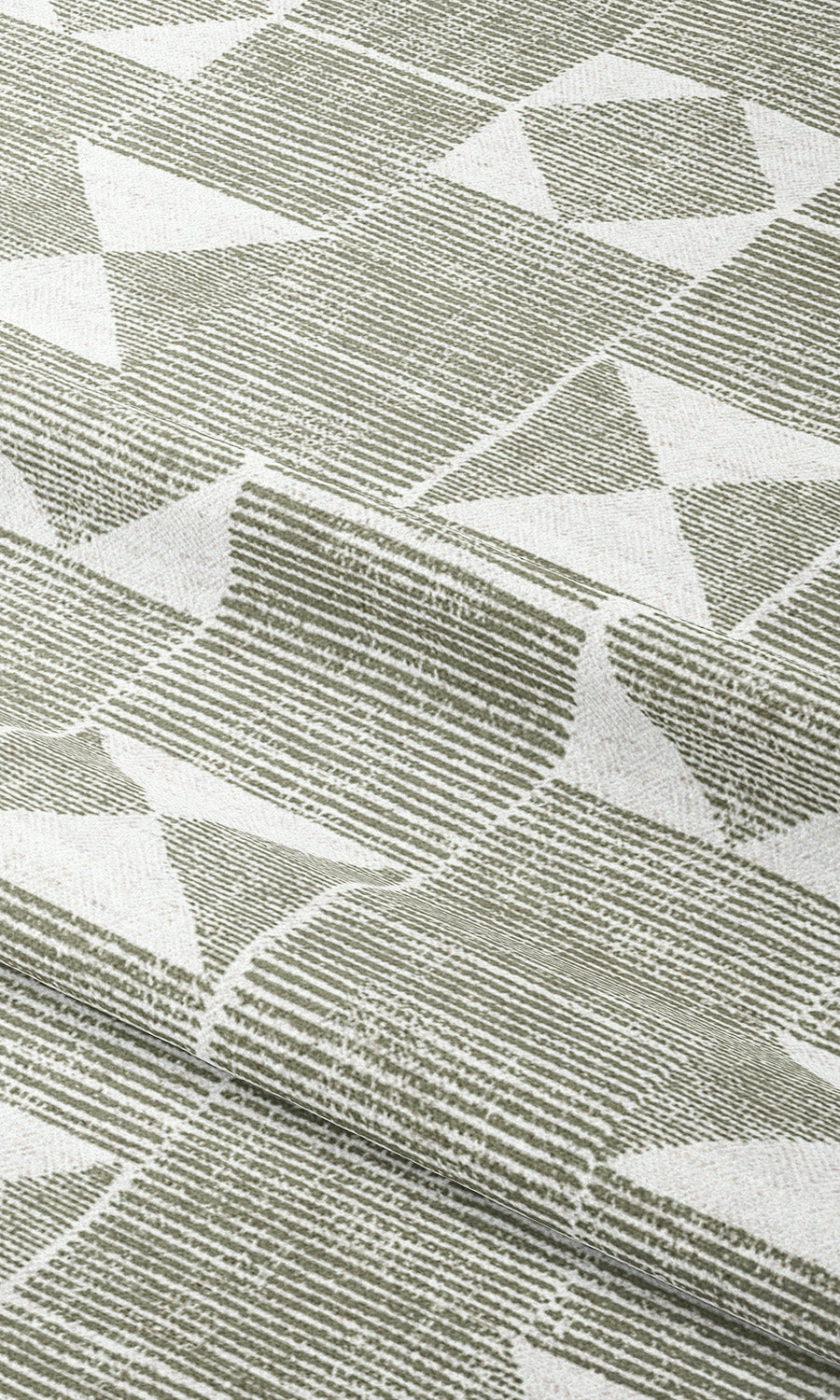 • Its seamless lattice of geometrics in a slightly washed-out finish, blending crisp geometry with lived-in ease