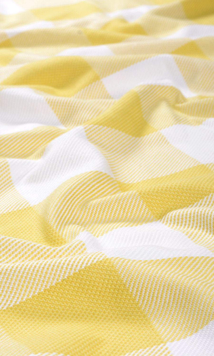 If a happy day was to be translated into fabric, it would be something like the Spotty Buff for sure. This 100% pure cotton fabric has bold buffalo checks in lemon yellow and pure white. The intersecting blocks look a paler yellow from afar. Bright and cheerful, this one will always keep your interiors feeling upbeat.