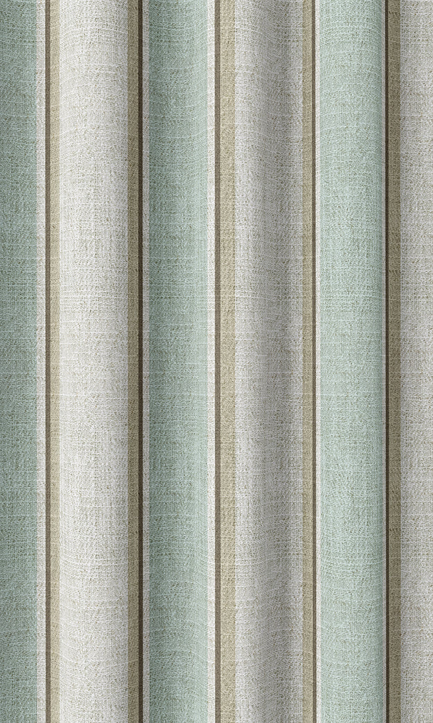 Designed with classic regency stripes in a soft color scheme of duck egg blue, beige and white, this fabric breathes simplicity and country vibes. The attention-raking scale of the pattern is complemented by an impressively calming palette. Elongate your space with elegant drapes and shades in this vertical striped fabric which can easily blend with any decor style.