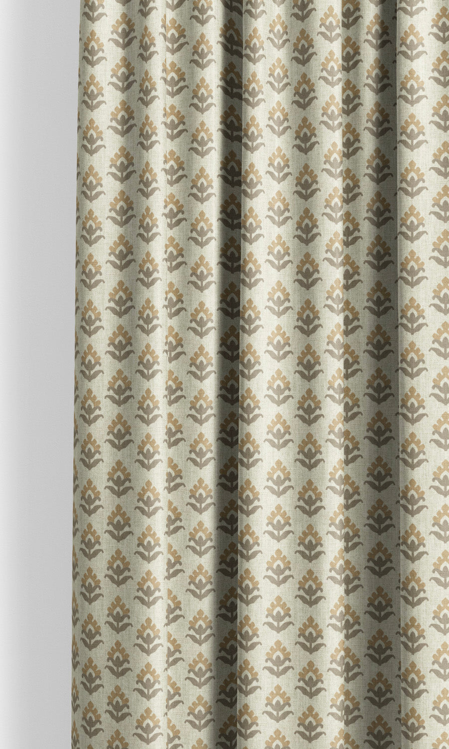 - Pick a suitable heading style: Style Steamed Milk block-print floral curtains with a heading style that feels right for the mood of the room and the overall leaning of your design. Consider flat panel tops for their unfussy lines, rod pockets for their charming frills, and pinch pleats for their tailored grace.