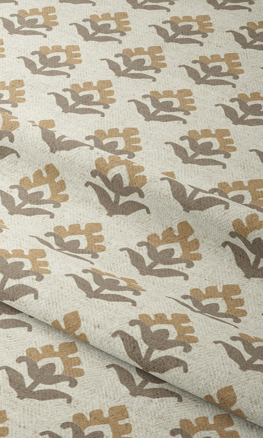 - Its calm cream canvas upon which earthy ochres and browns bring a garden to life