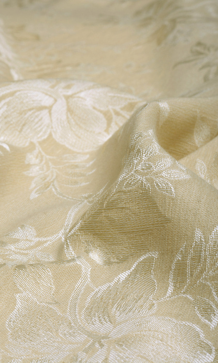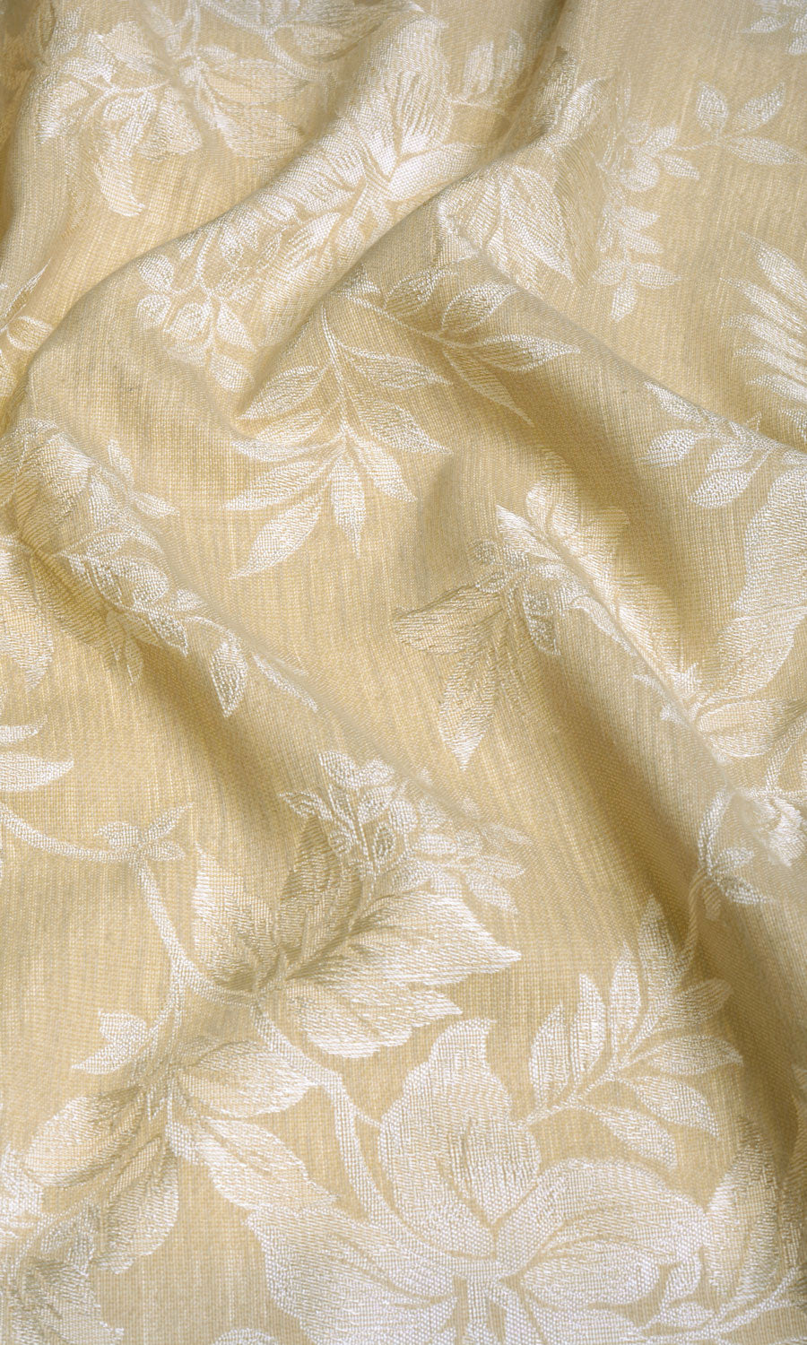 For an airy and relaxed room ambience, choose this serene floral jacquard fabric. Its serene beige backdrop is patterned profusely with a lush floral bunch pattern. To bring out the sweet beauty of this fabric in the fullest, consider getting this fabric made in pinched pleated curtains.