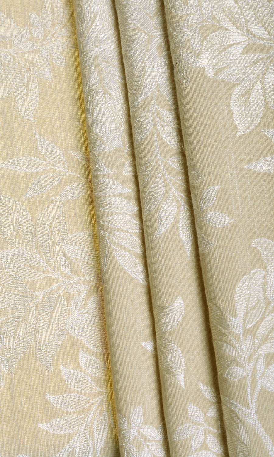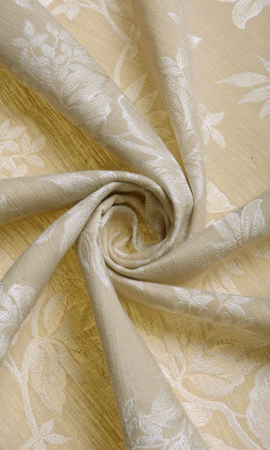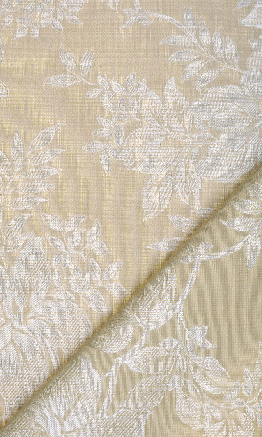 For an airy and relaxed room ambience, choose this serene floral jacquard fabric. Its serene beige backdrop is patterned profusely with a lush floral bunch pattern. To bring out the sweet beauty of this fabric in the fullest, consider getting this fabric made in pinched pleated curtains.