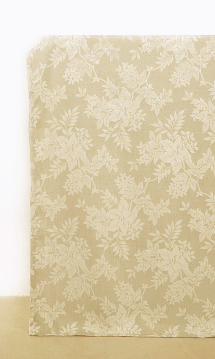 For an airy and relaxed room ambience, choose this serene floral jacquard fabric. Its serene beige backdrop is patterned profusely with a lush floral bunch pattern. To bring out the sweet beauty of this fabric in the fullest, consider getting this fabric made in pinched pleated curtains.