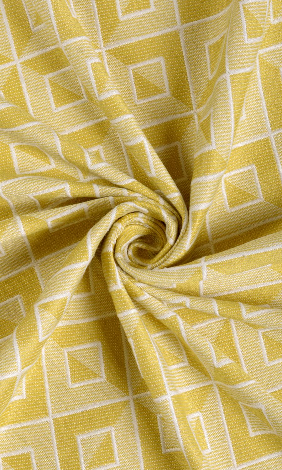 If you like geometric patterns but want more than simple checks, Sunburst is a fair choice. This sturdy woven fabric has a charming diamond check pattern with color play that creates complex visual impressions reminiscent of mosaic tiles. The color palette is cheerful with hues of yellow and white. A happy choice that's high on aesthetics.